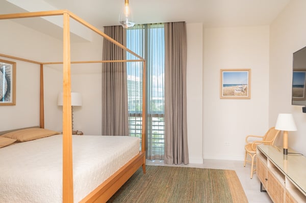 Immerse yourself in the luxury of this 2-bedroom Seafire Residences apartment, a spacious 2,167-square-foot retreat exuding sophistication. The interior design harmonizes seamlessly with the natural beauty of the Caribbean. Inside and out, this captivating Grand Cayman apartment is a visual delight. Marble accents in the kitchen and bathroom set the tone for an exceptionally elegant ambiance, where every design element is meticulously curated. The living area of this 2-bedroom Seafire Residences apartment radiates comfort and sophistication. Anchored by a sumptuously comfortable sofa, the space invites relaxation with its plush design, creating an ideal spot to unwind after a day of exploration. A strategically placed flat-screen TV graces the wall, offering additional entertainment options and enhancing the overall atmosphere. Embark on a comprehensive Seafire Residences journey that encompasses an extensive range of amenities, services, and resort privileges. Maintain your active lifestyle at the well-equipped on-site fitness center, take pleasure in a rejuvenating swim in the alluring pools, and unwind by the poolside as an attentive staff member is ready to cater to your preferred cocktails. Luxuriate in the choice to savor delectable meals at one of the resort's restaurants or relish the convenience of room service delivered right to your dining table.