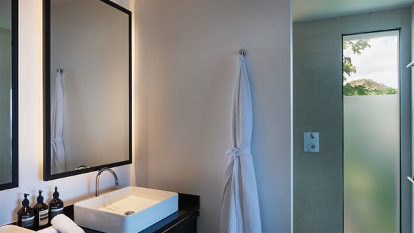 The holiday villa rental Aloha is a prestigious property located in Vitet facing an amazing ocean view. Modern in design and luxuriously equipped, this vacation home with an infinity heated pool and a fitness room offers upscale amenities in a refined setting. Between sea and sky, villa Aloha welcomes up to eight guests in its four bedrooms for a dream stay in St-Barths. A double-story villa, Aloha is an architectural gem set into the hillside. Its views over the ocean, Turtle Island and Grand-Cul-de-Sac lagoon are breathtakingly beautiful, and you’ll marvel at them from the bright living room furnished with a large, comfy sofa. The fully-equipped kitchen is located in the same space and can accommodate your private chef for any private event. You'll love dining al fresco under the covered terrace around the large dining table, close to the outdoor living room, also sheltered from the sun in the gentle trade winds. The whole setting is relaxing and quiet, for a unique and unforgettable stay with friends or family. Villa ALOHA’s terrace is located on the main level and offers breathtaking views over the sparkling ocean. Across the outdoor space, you’ll find the beautiful infinity heated pool, glistening in the Caribbean sunshine. You'll love relaxing in this idyllic scenery on the fine deckchairs under the shade of the parasols by the pool, sipping a cocktail in utmost quiet. An ajoupa is also available at the rear of the property in a very private atmosphere. In front of the spectacular view, you’ll experience delightful moments of contemplation in the majestic and exotic beauty of the Caribbean. Villa Aloha consists of four air-conditioned bedrooms with en-suite bathrooms. On the main level, the master bedroom opens onto the terrace with swimming pool and ocean views, in a refined decor and a quiet ambience. The other three bedrooms are located on the lower floor and also offer luxurious amenities. Sports lovers will appreciate the well-equipped fitness room also at your disposal during your stay on this lower level. Facing a spectacular view over the ocean and the lagoon of Grand-Cul-de-Sac, the vacation rental ALOHA is the ideal location for an unforgettable 8-people stay in St-Barths.