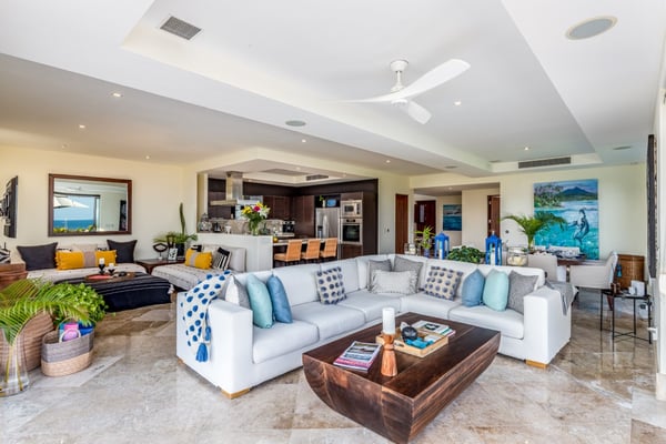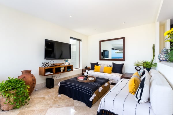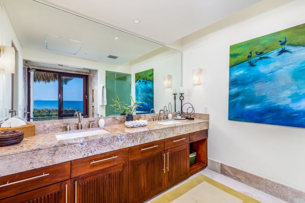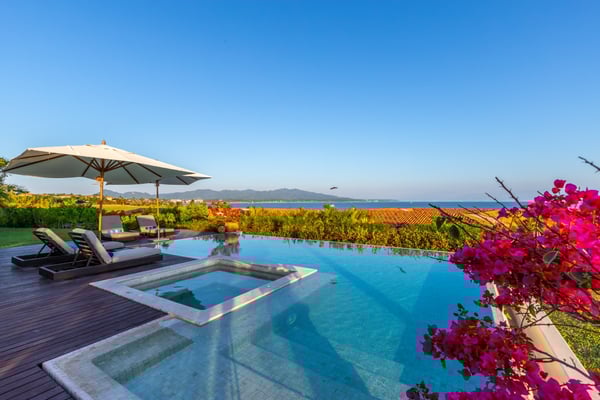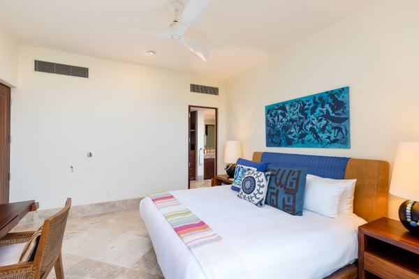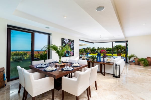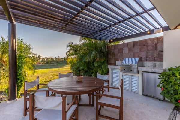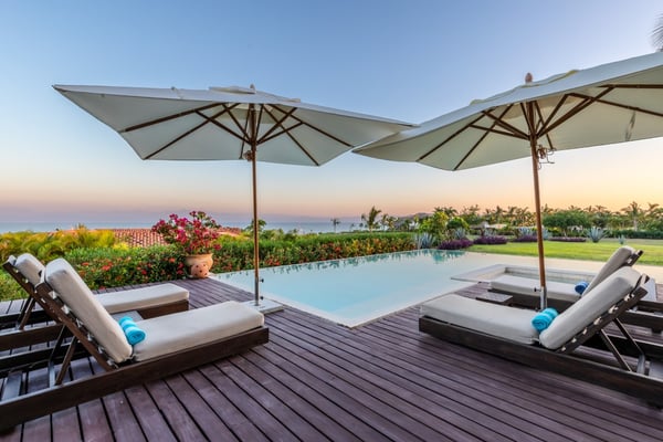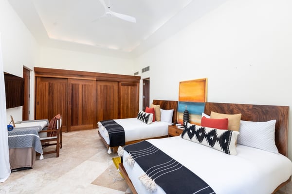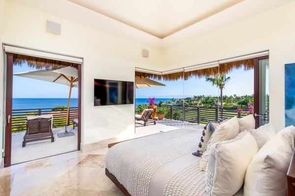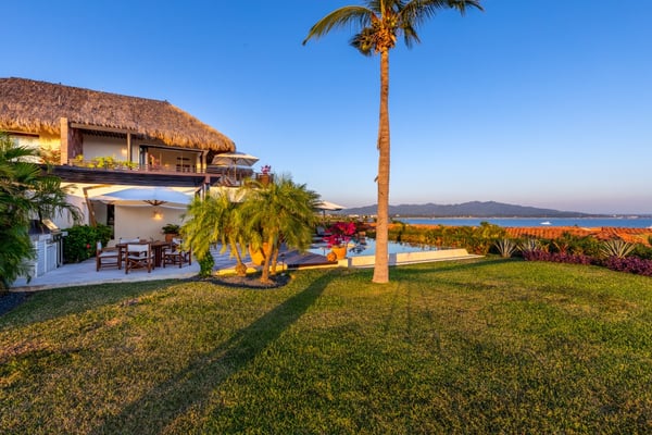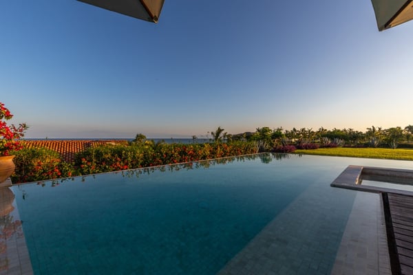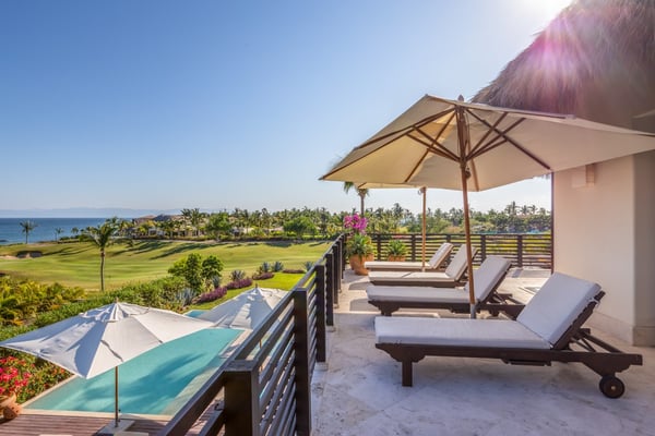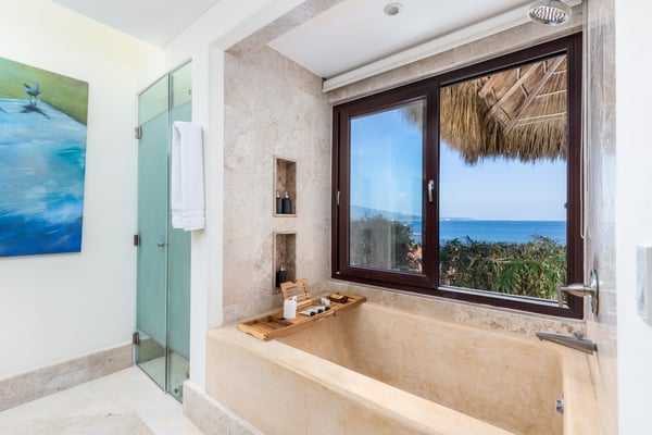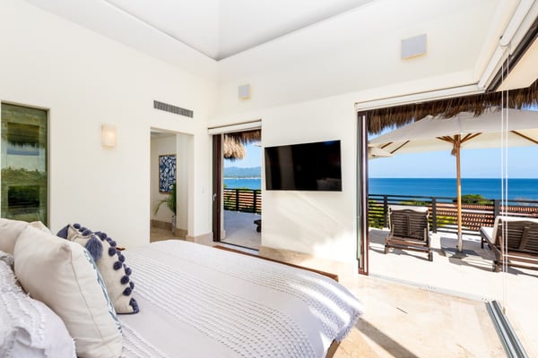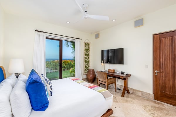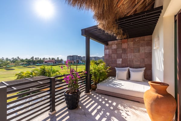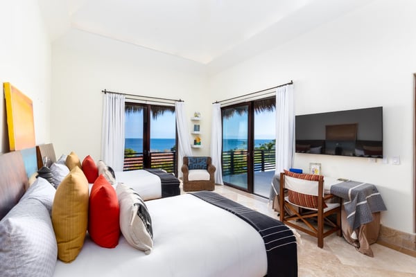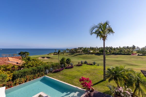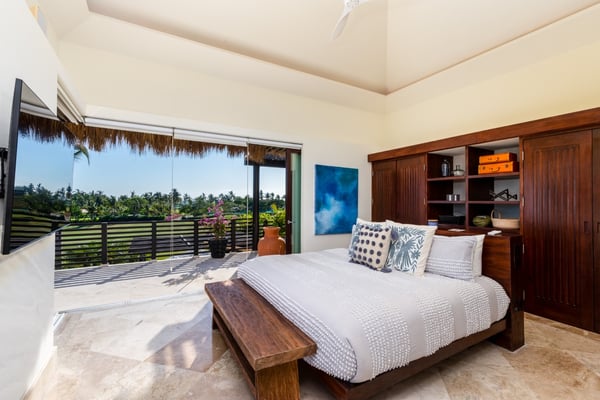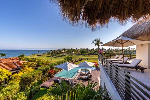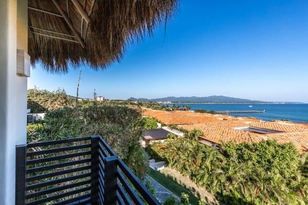 The Premier Golf Membership grants access to Pacifico Golf Course ($), Bahia Golf Course ($), the Tennis Centre ($), the Fitness Center ($), El Surf Club based on min. consumption fee ($), St.Regis Beach Club based on availability and min. consumption fee ($), Pacifico Beach Club, Sufí Ocean Club and Kupuri Beach Club. Contact one of our Villa Specialists for more information. Casa de las Aves | Casita Zen 14 is nestled between two golf fairways in the private community of Punta Mita in Porta Fortuna. The casita has a breathtaking view of the Bay of Banderas and the Pacific Ocean. This luxurious townhouse has three bedrooms and three and a half bathrooms that can accommodate up to six adults + two young children. Recently completed and updated Casa de las Aves enjoys a premier corner location. It has three separate primary suits, each with its own luxurious ensuite bathroom. Two primary suits have king beds and the third primary boasts two double beds with an ensuite bathroom, outside shower and meditation area. Guests enjoy sweeping ocean and surise views from spacious private decks, patios, balconies and garden. There is an expansive pool and jacuzzi and an outdoor entertainment area with its own BBQ grill. Rental includes daily housekeeping, and as part of that service the housekeeper will prepare a delicious home-cooked family-style meal each day – breakfast or lunch – you just pay for the cost of the food! Premium Punta Mita Membership (GOLF) includes FREE access to Kupuri Beach Club, Pacifico Beach Club, Porta Fortuna (SUFI) Beach Club and the new El Surf Club at La Lancha. The home has stairs, an open pool and a steep drop off in the garden and so young children would require continuous oversight.