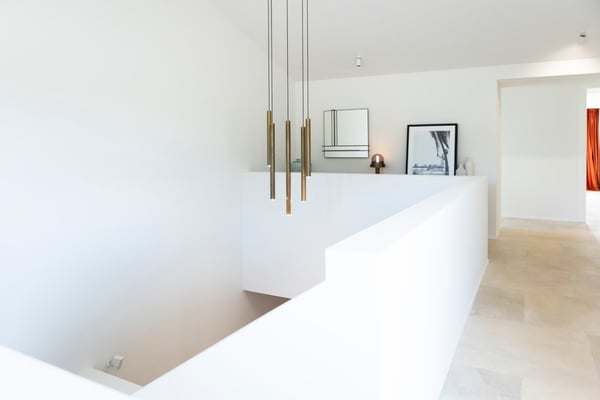 This stunning luxury 2-story modern villa is in a beautiful natural setting in the Southeast of Mallorca, a Mediterranean island that calls for wellness and relaxation with its turquoise blue waters, secret coves, golden sand beaches, beautiful green foliage, mountains, picturesque villages, and an entertaining capital city. The luxurious villa on a 5 hectares lot offers magnificent panoramic views of Sant Salvador while maintaining privacy and tranquility. Located close to picturesque historical villages in the center of Mallorca’s beautiful wine region, the villa totals a generous 950 m2. The high-class luxury villa with a total of 8-bedroom suites with ensuite bathrooms can host up to 16 people. The villa offers an atmosphere of exclusivity, and perfectly combines a modern style with a touch of typical Mallorcan countryside style. Elegant décor and deluxe amenities round up the special experience. Outside, set in a beautiful garden of 5 hectares, is a spacious heated infinity pool and a sun-filled terrace. The entry-level offers open-concept luxury with a bright dining and living area with a huge fireplace, that flows into a high-end kitchen. On the left side, there are three beautifully designed bedroom suites with ensuite bathrooms that feature direct outdoor terrace access. Tucked away from the living area on the right side, is the impressive and spacious master bedroom suite with an ensuite spa area, walk-in closet, and direct access to a private terrace. Three apartments are on the entry-level floor in a separate tract, each with a modern, fully equipped kitchen and a spacious bedroom suite with an ensuite bathroom. The lower floor boasts a lavish entertainment room, a creative workspace, a conference room, storage rooms with closets, a laundry room, and an additional spacious bedroom suite with a spacious bathroom. Huge stairways make for seamless movement between the two floors. Huge terraces surround the villa, beautiful patios, a secret cactus and olive garden area with a waterfall fountain, a BBQ fireplace, sitting benches and a water pond. The finca’s architecture blends indoors and outdoors to ensure openness and connection with nature while having privacy at the same time.