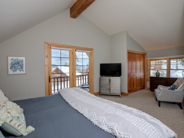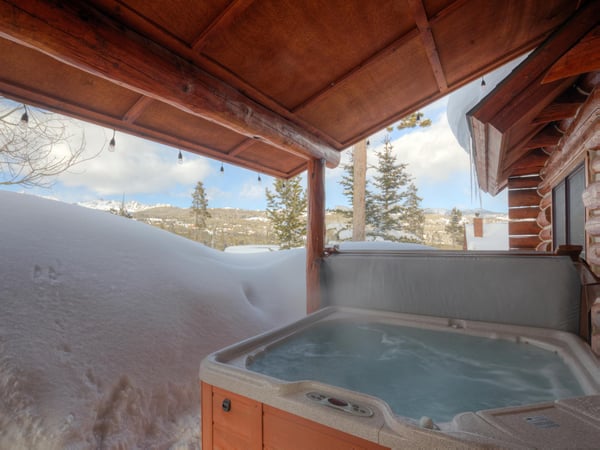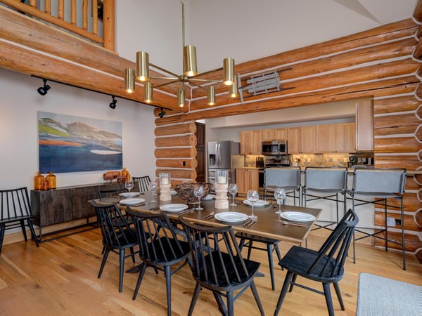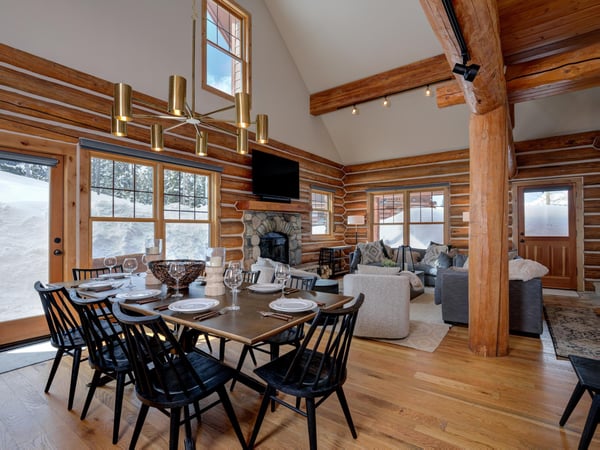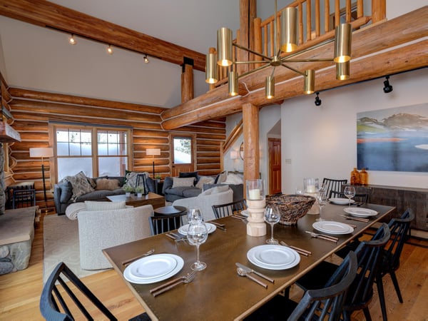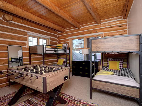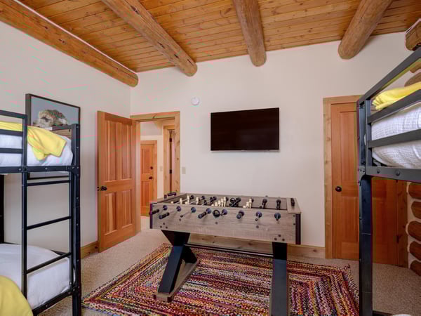 Ski Butlers offers you the best rental experience in the industry. No more lines. Ski Butlers is a full-service ski and snowboard company that delivers the equipment to you. Contact a villa specialist for more information. This 4-bedroom, 3-bathroom luxury cabin sleeps 10 in the Powder Ridge neighbourhood—a ski-in, ski-out community. Enjoy the rustic log cabin atmosphere with modern resort-like amenities, a PS4 system, a foosball table, ski storage in the garage, and a private 6-person hot tub with sweeping mountain views. The first floor of this log cabin boasts a spacious great room with new top-of-the-line furnishings and tall ceilings that expose the second-floor loft with a foosball table overlooking the dining and living areas. The kitchen boasts granite countertops and high-quality appliances, with a washer and dryer just off the hallway. The traditional dining table offers seating for 8, while the breakfast bar provides 3 more. In the living area, guests will find plenty of plush seating surrounding a fireplace and TV. Retire to the 2 bedrooms on this floor—1 bunk room with 2 sets of twin-over-twin beds and a PS4, and 1 other guest bedroom with a queen bed. Access a charming first-floor covered patio boasting a 6-person hot tub and breathtaking mountain views. Upstairs, guests can retire to the 2 comfortable bedrooms on the second floor—1 primary bedroom with a private bathroom and access to a private balcony and 1 other bedroom suite with a king bed and private bathroom, each with their own private workstation and desk. With on-site parking and a quick 2-minute drive to Big Sky Resort, 6 Rose Bud is the perfect home base for winter skiing and summer exploring, with an expansive mountain trail system nearby. For ski-in/ski-out access, take Buffalo Hide Trail—accessible behind the house—and follow it along the road. Follow along the trail to the White Otter Chairlift. To get home, use Lower Morningstar trail. *Please be advised this home does not have air conditioning.