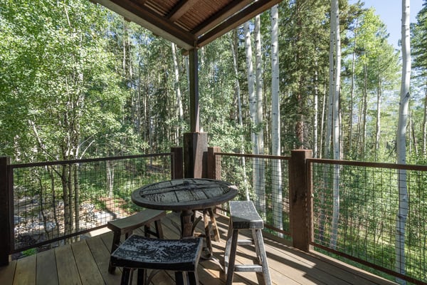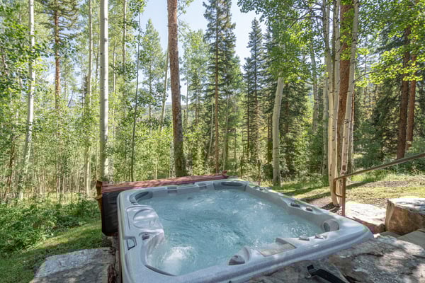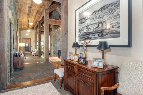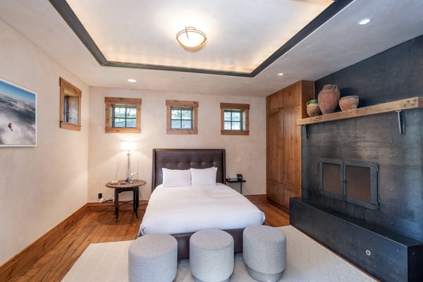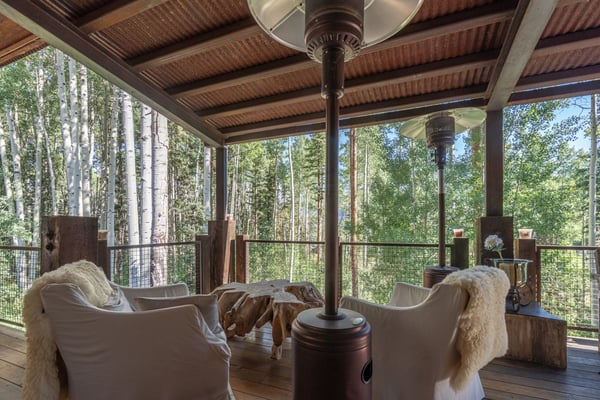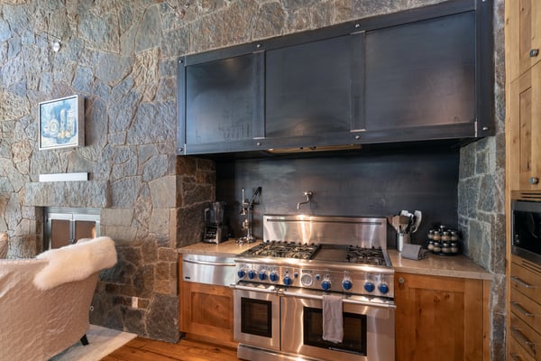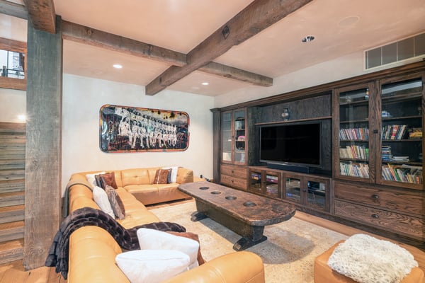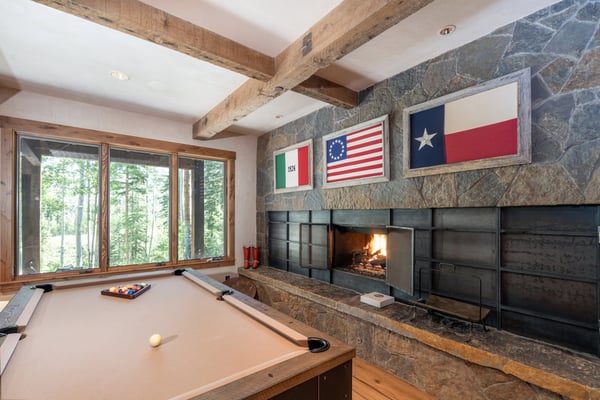 Rustic luxury reaches new heights at Robber’s Roost, an exquisite Mountain Village hideaway with five bedrooms, multiple living spaces, a gourmet kitchen, a full arcade, a billiards room, and a mother-in-law suite. Moments away from the bustling village core, the gondola, and downtown Telluride, this inviting ski chalet also places you steps away from some of the most popular ski runs in North America. All this, plus a private hot tub for warming up and winding down at the end of each day. Welcome to Robber’s Roost! With an eye-catching wood plank and stone facade, your mountain getaway begins the moment you arrive at the heated garage parking. Once inside, the main level great room certainly lives up to its name, with soaring vaulted ceilings, exposed wood beams, and sparkling floor-to-ceiling windows framing the soothing forest views. In the center of the room is a huge stone fireplace that adds warmth and welcome to the cavernous space, as well as plush sofas and armchairs for relaxing around the flames. Through the fireplace, you can see the formal dining room with seating for sixteen that leads into the chef-designed kitchen. In the center of the kitchen is a restaurant-worthy Thermadore gas range that’s surrounded by lots of options for sitting and socializing, including at the island bar, at the eat-in breakfast nook, or in front of the fireplace. There’s also lots more alfresco seating through the sliding glass doors out on the covered patio. In the primary bedroom suite, there’s a lush king-size bed, two leather side chairs, a stone-front fireplace, and a large HDTV, all sitting underneath a gorgeous exposed wood beam vaulted ceiling. In the ensuite primary bathroom, your private spa awaits, complete with a soaking tub, gigantic, glass-enclosed, step-in shower, and a double vanity sink. Four additional bedroom suites include king-size and queen-size beds, private balconies, HDTVs, and attached private bathrooms. The final bedroom suite is a bunk room, which includes a flexible layout of a twin-over-twin-size bunk bed and a full-over-full-size bunk bed, as well as an ensuite full bathroom with a step-in shower. Additional living spaces at Robber’s Roost include a popular game room, complete with multiple arcade games, an air hockey table, a pub-like bar, and a full-size pool table. There’s also an office/library space for when you need to get a little work done, and a completely separate mother-in-law unit with a living area and a kitchen, for those in your group who need a bit more personal space. At the end of the day, you may all wind up kicking back in the incredibly relaxing hot tub while you relive your day full of mountain adventures. The location of Robber’s Roost is close to perfect, placing you far enough away from the crowds so you can enjoy the soothing sounds of the wind whistling through the trees, yet close enough that you can take full advantage of the world-class ski slopes and the endless dining and shopping options in town. TMV BL# 011242