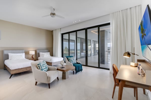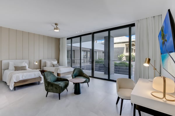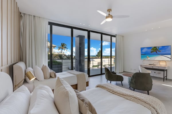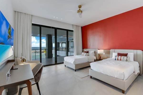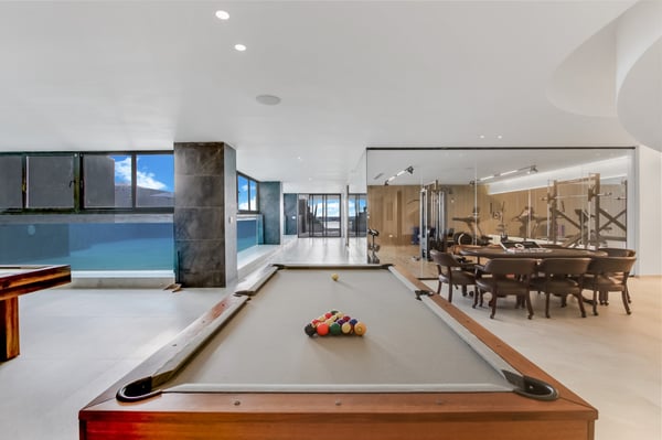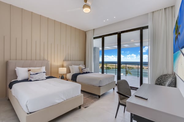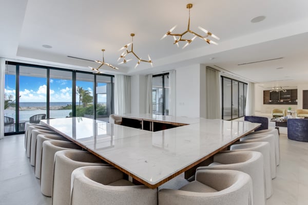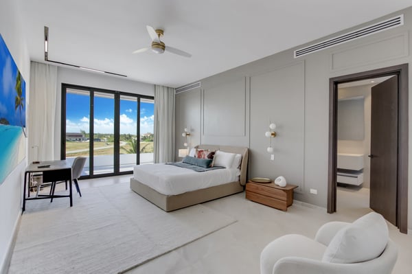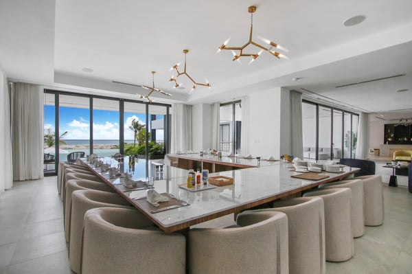 Please be advised that a new golf course is currently under construction in the vicinity of the villa. As a result, there may be some noise during your stay. Caribbean Bliss is a stunning 10-bedroom, 13 bath plus 1 half bath, 3-story luxury estate located oceanfront with a private beach in Cap Cana. This is a new construction from 2024. With its unique and contemporary design, this property exudes a sleek, modern aesthetic complemented by stylish furniture, artwork, complete with all the amenities that you could possibly dream of. Step through the impressive front door and be welcomed into the grand foyer, which features a remarkable spiral staircase with an indoor green area and double-height ceilings. This area leads you to a beautiful living area with an adjacent wine cellar, an indoor dining area with stunning ocean views, bar area and TV room. The living area connects seamlessly to the balcony with outdoor lounge area, the swimming pool, and the private beach. NOTE: Access to the pool area requires descending two flights of stairs. The spacious outdoor area features a private swimming pool, a pool deck with sun loungers and umbrellas, a Jacuzzi, and a private beach. Here, you can lounge on one of the beach chairs and go for a swim in the ocean. NOTE: The ocean may at times be rough, and there may be a current, so swimming is always at your own risk. The large kitchen is fully equipped with all the essentials for cooking your favorite meals. Additionally, your rental includes a private chef and kitchen assistant who will expertly prepare all your meals during your stay, allowing you to unwind and savor every moment of your vacation (food and beverages not included). Fulfill all your entertainment needs with two bar areas (beverages are not included), pool- and poker tables, and darts. For movie nights, gather in the home theater, complete with a largen screen, projector, and comfortable chairs, for the ultimate cinematic experience! Keep up your fitness routine, and indulge in the ultimate pampering with an in-house massage. Caribbean Bliss has a private salon, a spa with 3 massage rooms, a state-of-the-art gym with the latest fitness equipment, and a yoga studio.