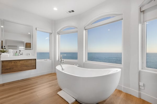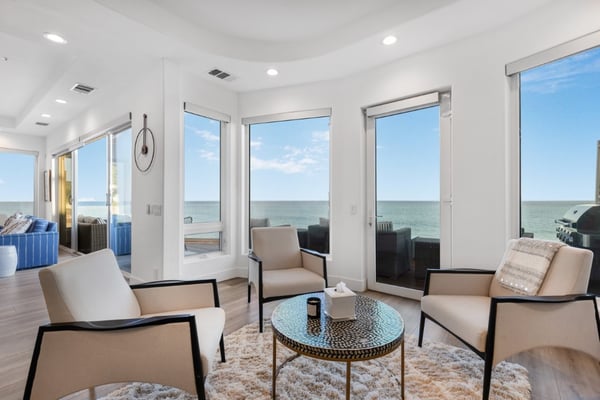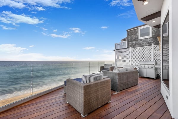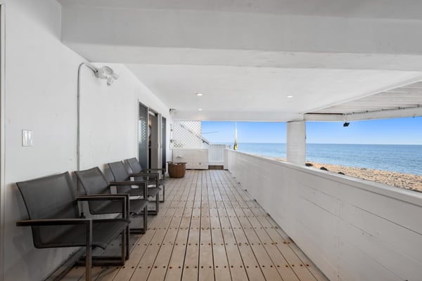 Situated on Escondido Beach, one of Malibu's most private and sandy beaches. Tucked away on a private residential street for increased seclusion and tranquillity. Enjoy bright, spacious interior design in this open concept layout, highlighted by large walls of glass and three oceanfront decks. Sweeping ocean, Catalina, whitewater, and coastline views from the main-level living room and designer-done kitchen with island and top appliances. Off the living room sits a home office with high ceilings and an abundance of natural light. The beach-level great room is perfect for lounging or entertaining with its seamless indoor-outdoor flow to one of the most sought-after, sandy beaches in Malibu. Wake up to captivating views from the primary bedroom and the spa-like bathroom with steam shower, soaking tub, dual vanities, and walk-in closet; three additional en-suite bedrooms complete the third floor. The fifth bedroom on the ground-floor doubles as a fantastic home office, guest room or gym. Other amenities include: security system/cameras, several large flat screens, gated driveway, remote-controlled window shades, central HVAC, wine fridge and more. A highly desirable location, with immediate access to the famed Geoffrey's Restaurant and only a short stroll on the sand to Paradise Cove, this oceanside retreat is also close to Cross Creek and the best shopping, dining, surf, and entertainment Malibu has to offer. Please note: - Due to manufacturer or user error, we cannot guarantee that the elevator will be in service. Please advise before booking if elevator usage is mandatory for your stay. Cellular reception in the area may vary depending on your provider. To ensure a seamless experience, we recommend downloading Google Maps offline before your arrival. By saving the area in advance, you can easily navigate and access directions without cellular service or Wi-Fi. This will help you get around with ease during your stay. Please Note: No Garage Access STR24-00142