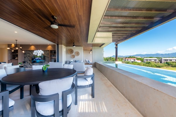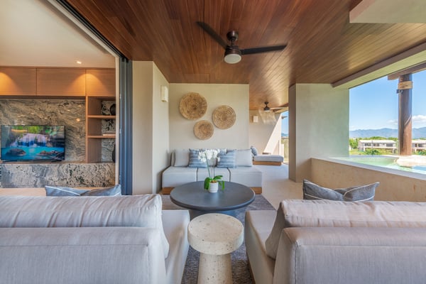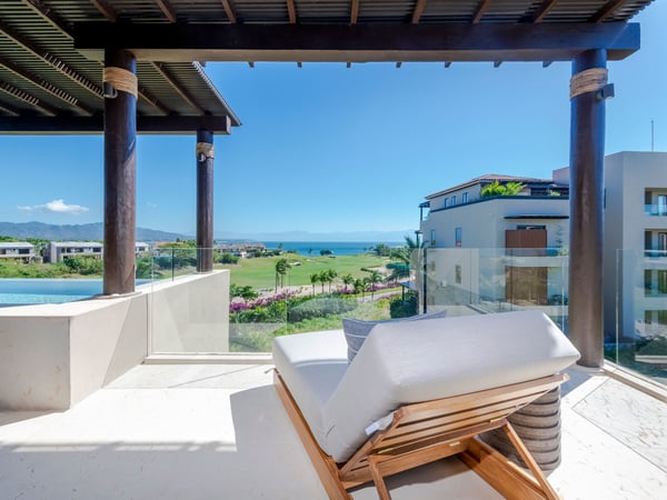 The Premier Golf Membership grants access to Pacifico Golf Course ($), Bahia Golf Course ($), the Tennis Centre ($), the Fitness Center ($), El Surf Club based on min. consumption fee ($), St.Regis Beach Club based on availability and min. consumption fee ($), Pacifico Beach Club, Sufí Ocean Club and Kupuri Beach Club. Contact one of our Villa Specialists for more information. Experience coastal elegance with this three-bedroom condo in TAU Residences, offering stunning ocean and golf course views. The sleek and modern design of Condo Sardan blends indoor and outdoor living spaces seamlessly, creating a luxurious retreat.