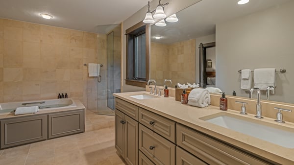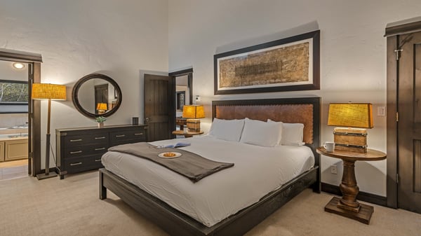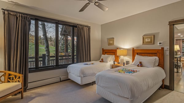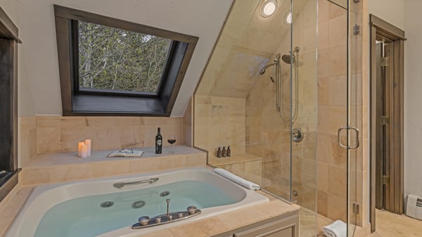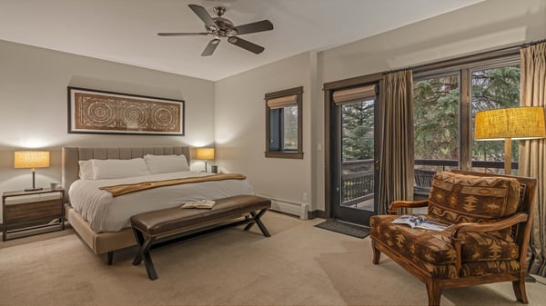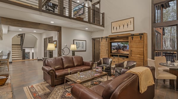 Ski Butlers offers you the best rental experience in the industry. No more lines. Ski Butlers is a full-service ski and snowboard company that delivers the equipment to you. Contact a villa specialist for more information. Surrounded by aspen trees on the outside and with lofty cathedral ceilings inside, this spectacular multi-level home towers alongside the Beaver Creek golf course. Situated in an exclusive secluded area, yet minutes to all the activity in Beaver Creek Village, Aspen Glade Retreat is ideal for enjoying either a winter or summer mountain vacation. The five bedrooms, two kitchens, two living and dining rooms and an office space are spread out on the four levels of this expansive residence. Windows at every turn flood the home with natural light, and multiple decks offer unparalleled outdoor living spaces, and mountain modern decor creates a warm, welcoming ambiance. The focal point of the spacious main living area is a soaring wood-burning stone fireplace. Around this, guests can easily flow indoors and out to the expansive deck. You’ll be enjoying cards at the game table or watching TV settled into large leather sofas in the living space. Or on the other side of the double-sided fireplace, dining and taking in the views of the golf course at the dining table that seats 10 people. Foodies and chefs in your group will delight in the gourmet kitchen with Viking ovens and gas stove top, SubZero refrigerator and gas grill on the deck. Sip your morning coffee at the breakfast table surrounded by a grove of aspen trees or at the kitchen counter that has four barstools. A full laundry room is situated off the kitchen. Wrapping around this main level is a large deck with a private hot tub, an outdoor dining table that seats 6 guests, and spectacular views of the golf course. One of the home’s 5 bedrooms is on this main level. It features two twin beds, a TV, ceiling fan, a door to the deck and an ensuite bathroom with a double vanity a separate shower and a jacuzzi tub. One level up is a family room with a pool table and TV that is open to the main living area below and the loft above. When the fun and games are over for the day, guests can retreat to the two bedrooms where they’ll feel like they’re sleeping among the treetops. The king bedroom has a sitting area, and the queen bedroom has a private deck. Both have cathedral ceilings with ceiling fans, TVs, and ensuite bathrooms with double vanities and separate showers and jacuzzi tubs. The pinnacle of the home is a light-filled, airy loft that is accessible via a spiral staircase and looks down on the main living area and out to the treetops. There’s a workspace and a Peloton bike. The second level of the home can function as a separate apartment. There is a full kitchen with an electric stove and bar counter with 3 stools. A round dining table seats 4 people. The cozy living room has a wood-burning fireplace and TV and opens out to a large deck. The king bedroom on this level has a sitting area, private deck, laundry closet and ensuite bathroom with double vanity and separate tub and shower. The second bedroom on this level has a full bed and access into a hall bathroom with single vanity and tub/shower combo. The lower level is the main entry to the home. A stunning iron and glass front door greets you. Or you can enter through the 2-car garage. You can opt for stairs or the elevator that ascends to all levels of the home, except for the upper loft. During your stay in Beaver Creek, you will have access to the resort's complimentary shuttle, using the convenient Village Connect App. It operates from 7am-midnight. This home does not have air conditioning. Colorado's cool summer nights will keep this home comfortable by opening windows after the sun goes down, and then closing the windows and blinds during the day. Utilizing the overhead fans, if available, keeps airflow moving, and additional floor fans can be found in many bedroom closets. Can't live without it? A/C units may be available for rent for an additional fee. This home has a noise-decibel monitoring device and an exterior security camera. 7,213 sq. ft. BCRC STR License: 1995