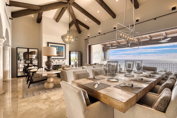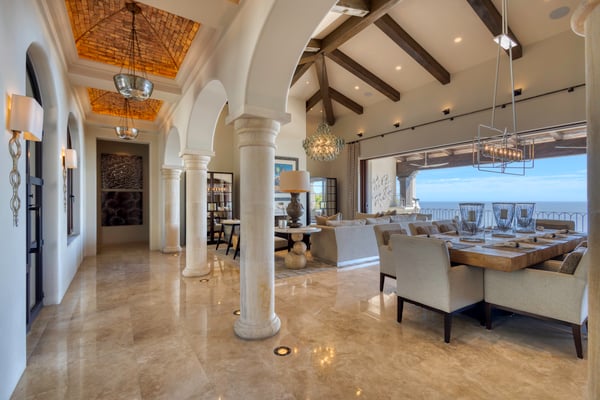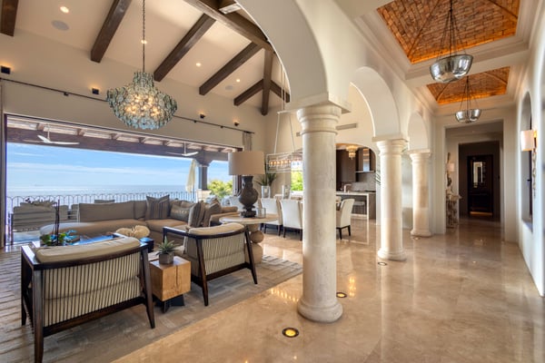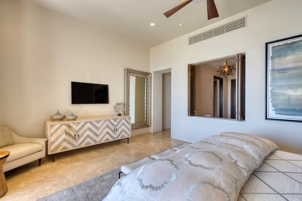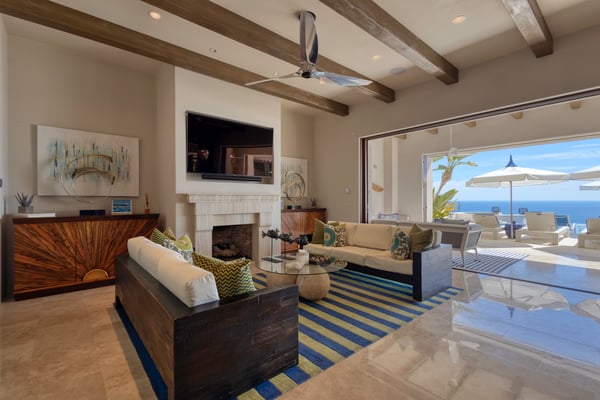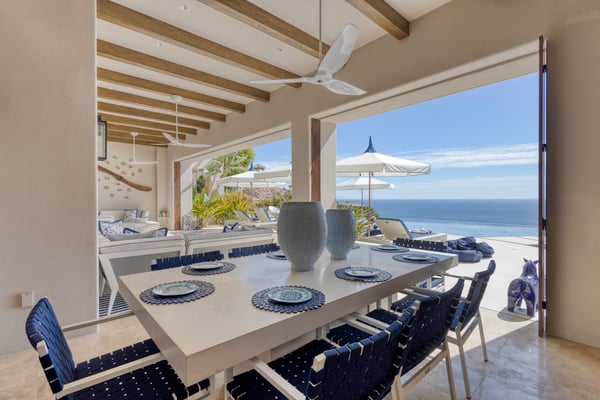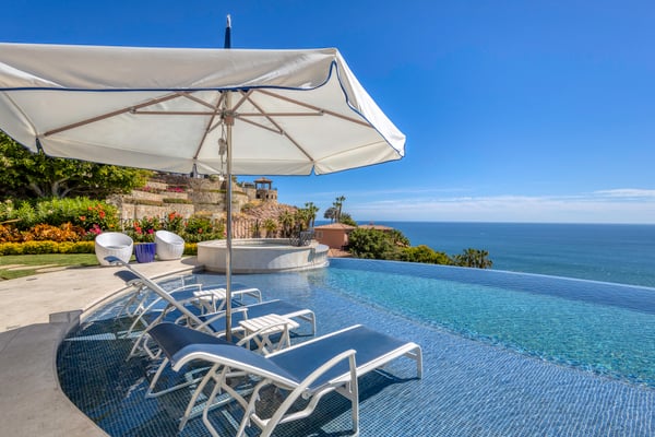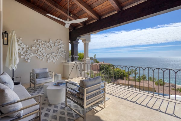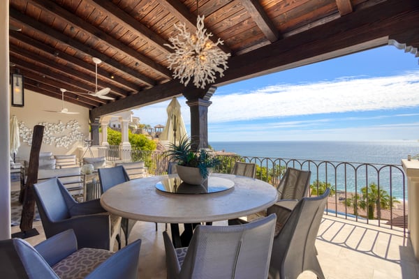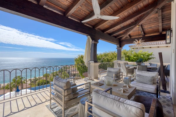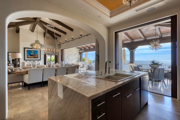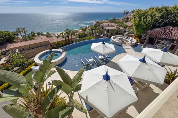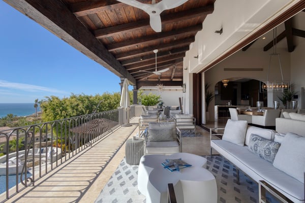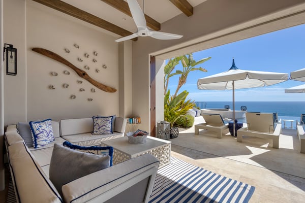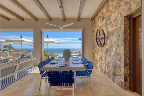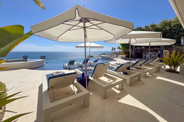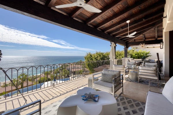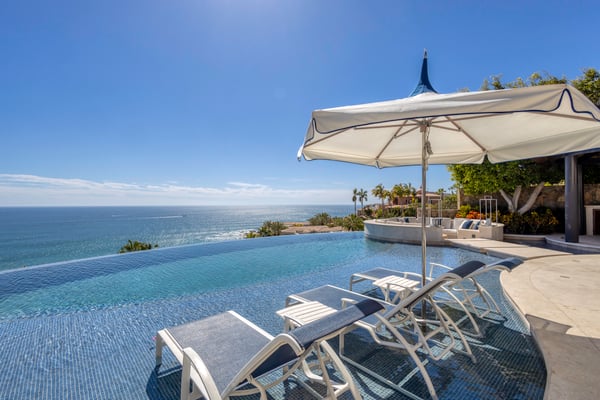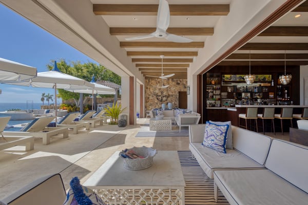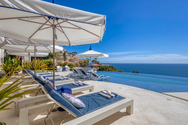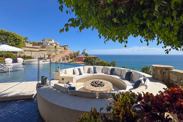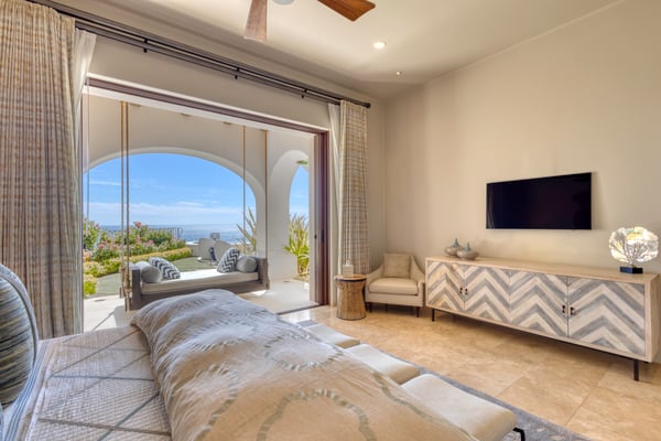 Step into the splendor of Casa Maravante, your private sanctuary nestled within the exclusive Palmilla and Villas Del Mar communities in Los Cabos. This majestic 6-bedroom, 7-bathroom estate offers a serene retreat for groups of 12, combining privacy with panoramic ocean views that promise to captivate and enchant. Spread over 9,000 square feet, Casa Maravante is designed with sophistication and ease in mind, boasting a layout that encourages both relaxation and socializing. The villa features expansive living spaces that merge effortlessly with the outdoor terraces and balconies through sliding glass walls, creating an airy, open environment. The state-of-the-art kitchen is ready to cater to all your culinary needs, while each bedroom is a retreat on its own, with the master suite offering a plush king-sized bed, a spa-like en suite bathroom, a walk-in closet, and a secluded terrace overlooking the sea. Outdoors, Casa Maravante shines with its luxurious amenities, including a private infinity pool and spa that blend into the horizon, and a variety of cozy lounging areas. An elegant cabana and a modern fire pit area provide the perfect settings for evening entertainment or quiet reflection under the stars. For a bespoke vacation experience in Los Cabos, Casa Maravante awaits to offer you a world of luxury, comfort, and breathtaking beauty.
