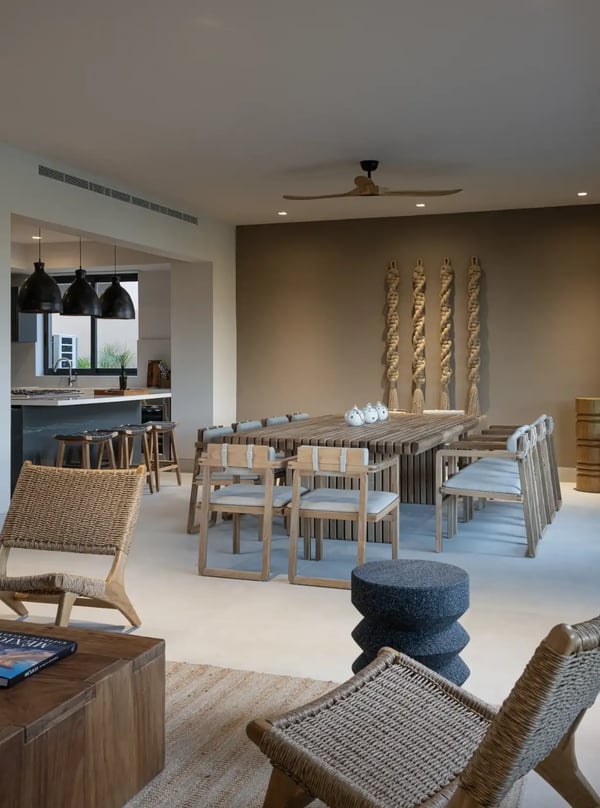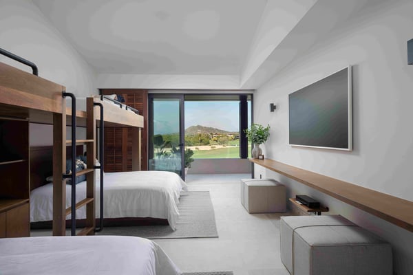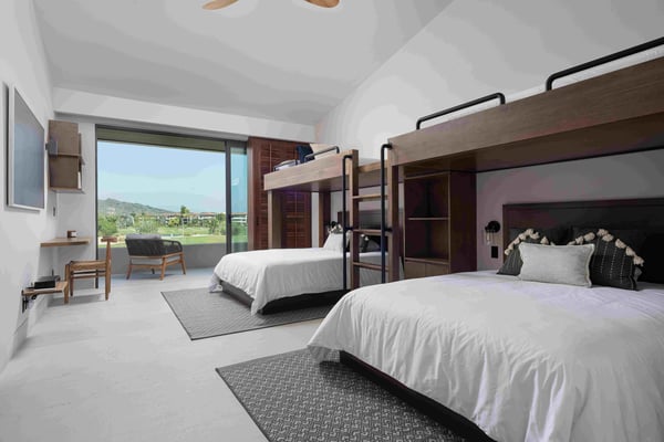 The Premier Golf Membership grants access to Pacifico Golf Course ($), Bahia Golf Course ($), the Tennis Centre ($), the Fitness Center ($), El Surf Club based on min. consumption fee ($), St.Regis Beach Club based on availability and min. consumption fee ($), Pacifico Beach Club, Sufí Ocean Club and Kupuri Beach Club. Contact one of our Villa Specialists for more information. Welcome to Casa Bakal, a refined four-bedroom retreat set along the rolling fairways of a Jack Nicklaus Signature golf course in the exclusive Porta Fortuna community. Designed for up to 14 guests, this brand-new villa blends contemporary Mexican architecture with modern sophistication, offering a sanctuary of elegance and tranquility. With seamless indoor-outdoor living, a private pool and Jacuzzi, and thoughtfully curated spaces, Casa Bakal invites families and groups to experience a stay where comfort meets exclusivity. Crafted to enhance relaxation and connection, Casa Bakal features an open-concept design bathed in natural light, creating a fluid harmony between indoor and outdoor spaces. The villa offers two primary suites with en-suite bathrooms and breathtaking golf course views, while the additional two bedrooms provide versatile sleeping arrangements, making it ideal for families and groups. Step outside to a private oasis, where a sparkling pool and Jacuzzi are surrounded by elegant lounging areas, perfect for sun-drenched afternoons or tranquil evenings under the stars. Whether indulging in a poolside retreat or admiring the serene golf course setting, Casa Bakal is the ultimate destination for an effortless, luxurious escape.