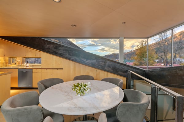 Nestled just a block from the gondola and near the San Miguel River in downtown Telluride, this stunning six-bedroom penthouse offers a rare blend of luxury and convenience. Experience mountain living at its finest with breathtaking 360-degree panoramic views and expansive living spaces designed for relaxation and entertainment. With over 5,500 square feet spread across four levels, this home features two full kitchens, a kitchenette, six full bathrooms, and two half bathrooms, making it ideal for large groups or families. Relax in style with five king beds and one queen bed, comfortably accommodating up to 12 guests. The open-concept living areas provide ample space to gather and unwind, while the private rooftop deck offers unparalleled views of the surrounding mountains and ski slopes. Whether you’re unwinding in the après lounge, enjoying a meal in the gourmet kitchen, or taking in the stunning scenery from the rooftop, this penthouse ensures an unforgettable Telluride vacation experience. As you enter, the après lounge sets the tone with its cozy ambiance, complete with a kitchenette featuring a wine fridge and beverage options, perfect for unwinding after a day on the slopes. The space also offers complementary recovery slides, boot dryers, and shoe trays for added convenience. A drop zone with cubbies and ample storage for gear ensures that everyone has a place to store their equipment. The second floor features four luxurious bedrooms, each with ample closet space and stunning views. The well-equipped kitchen is designed to meet the needs of any chef, offering high-end appliances and spacious countertops. The living area includes vaulted ceilings, a dining table, and a television, making it the ideal spot to relax after a day of adventure. A balcony provides views of the ski area, adding an extra layer of charm to this already impressive space. The third floor offers additional living space, including a cozy lounge area where guests can relax with games and puzzles or enjoy a movie. Two spacious bedrooms are located here, both with ensuite bathrooms, ample closet space, and views of the San Sofia Ridge. The laundry room on this floor is equipped with hanging racks and a folding space for convenience. The penthouse level, known as the snow globe, is the crowning jewel of this remarkable home. Featuring a chef’s kitchen, an intimate dining area, and a cozy living room, it offers a modern layout with an inviting atmosphere. The private rooftop deck provides the best views in all of Telluride. Take in the sights of skiers carving down the slopes by day or watch the groomers at work under the stars in the evening. There’s truly nothing like it in the heart of downtown Telluride. This penthouse offers a perfect balance of luxury, comfort, and proximity to everything Telluride has to offer. Whether you’re exploring the nearby shops and restaurants or heading out to enjoy the stunning mountain views and world-class skiing, this home offers everything you need for an unforgettable mountain getaway. Book your stay today and experience the best of Telluride living in this one-of-a-kind penthouse. TOT BL#01035