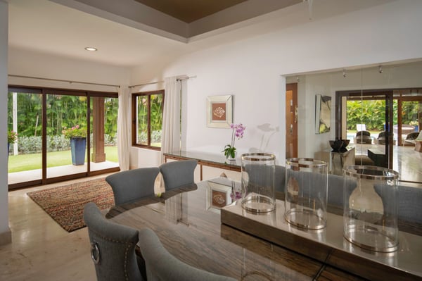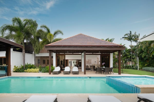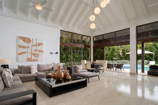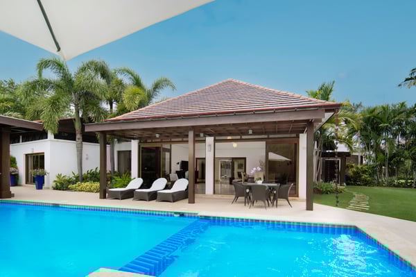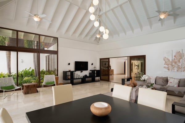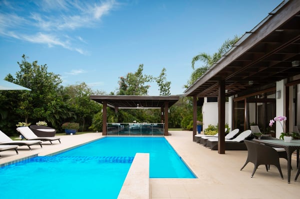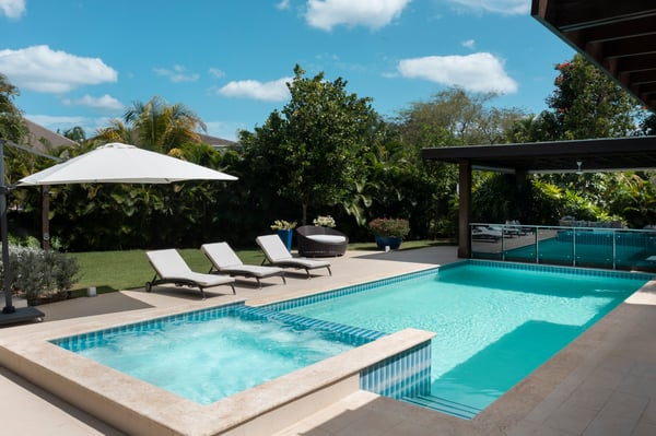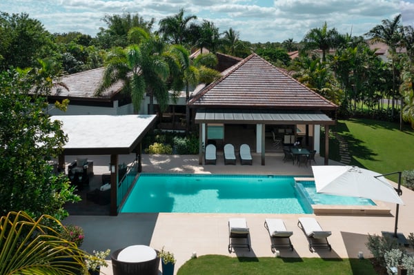 All guests must register with the Casa de Campo Concierge office, and for a small daily fee ($30 per adult per night & $15 per child per night), are granted access to resort areas and amenities. Casa de Campo Resort facilities and amenities include golf courses ($), the fitness centre ($), racquet center ($), restaurants ($) and bars ($). Contact Rental Escapes for more information about pricing. Welcome to Casa Soñare, a classic villa thought for families looking to spend quality time together. Each of its 5 bedrooms is meticulously designed for comfort and tranquility, ensuring restful nights and rejuvenating mornings. The modern kitchen invites culinary enthusiasts to cook delicious communal meals. The air-conditioned living room area features a sober color palette with subtle marine accents consistent with a Caribbean ambiance. Outside, discover a secluded oasis where a refreshing pool and an inviting jacuzzi await. Two terraces provide the perfect setting to relax, converse, or indulge in leisurely activities. Casa Soñares offers a haven of tranquility for everyone, while adventure awaits just beyond its doors with everything that Casa de Campo has to offer.