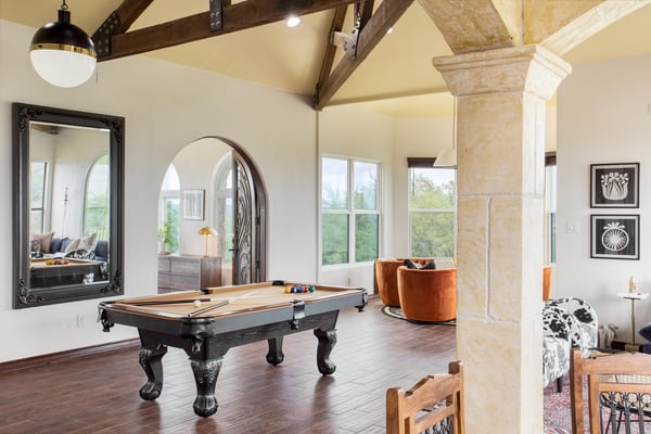 Taking cues from classic European design, this home has been elegantly designed to maximize your experience of its beautiful view. Play a competitive game of pool or even cook dinner while staring out at the scenic Colorado River. Those whose idea of relaxation is rest might want to unwind in the clawfoot bathtub or pool, while others may find their sense of calm at the in-home bar conveniently connected to the living room. Mix up a drink and play a game of tabletop bowling or connect four—you deserve it. There are so many reasons to love Austin, and its incredible barbecue is just one. The live music capital of the world, Austin, has a thriving art scene and a party culture to match. Its crown jewel, Lake Travis, is lined with lively bars, restaurants, golf, and parks. Spend your days on the lake’s crystal clear waters, bar hopping on Sixth Street, and shopping down South Congress Ave. Locals and visitors love to “keep Austin weird”, which is reason enough to travel to this quirky city.