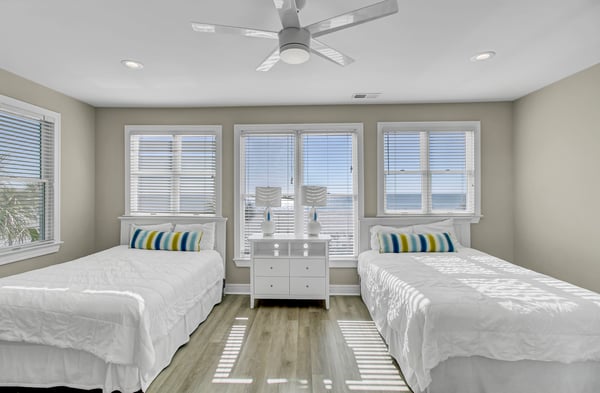 Palmetto Pavilion, located oceanfront on the Boardwalk, is certain to entice you and your family to stay here forever. Everything you will need for a perfect and memorable vacation has been considered and provided at Palmetto Pavilion. The first item needed to make a vacation perfect is an oceanfront view. From Palmetto Pavilion, you will find oceanfront views from the living area and two bedrooms, as well as the two oceanfront decks. Next, you need entertainment for a perfect vacation. Located on the Grand Pavilion Boardwalk, your family will find two ocean-front swimming pools, a beach café and bar, an ice cream shop, and a beach shop all steps away from Palmetto Pavilion. Nightly and weekend entertainment can often be found on the Boardwalk during the Summer Season. Finally, to make the perfect vacation, you need wonderful accommodations. Originally designed as a small bed and breakfast, Palmetto Pavilion has plenty of room for your family. Each bedroom features new solid surface flooring, a full bath, HVAC control, and a smart television. Bedding includes two king beds and four queen beds. With many new enhancements, the kitchen, dining area, and living room are located on the first level and provide a comfortable location for your family to gather and share their many experiences at the beach. Once the stories have ended, everyone can enjoy the large flat screen television or head back to the beach for an evening filled with fun, looking for sand crabs or maybe sand dollars. Just off the coast of Historic Charleston, Isle of Palms offers a stunning six-mile stretch of white, sandy beaches. Spend the day chartering a boat and paddleboarding in the Atlantic, or explore the extensive wildlife within the area's marshes and creeks. Isle of Palms is also the perfect place to decompress, with renowned spas, charming restaurants, and sweeping golf courses. All this and more await you in the jewel of South Carolina's Lowcountry.