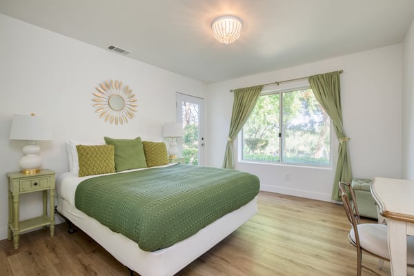 Please note that there is limited cell service in the area due to the remote location of the home. Tucked among the picturesque hills of Temecula, Lantern House welcomes your group to the epitome of Southern California wine-country retreats. With a backyard oasis and stunning sense of privacy and elegance, this is a one-of-a-kind countryside experience. Your guests will be stunned from the moment they pull up on the stone drive. Step inside and be greeted by the main living room, where a comfortable sectional, fireplace, and TV create the perfect setting for cozy movie nights. Just a few steps away, the dining area beckons with a beautiful wood table and bench seating. Engage in friendly competitions at the pool table or gather around the fully-equipped kitchen, complete with a gas range, modern appliances, and additional barstool seating at the counter. Upstairs, a second sitting area offers more room to spread out with another large sectional and a convenient workspace. Five comfortable bedrooms make this home an ideal retreat for multiple families or groups of friends. The primary bedroom, with direct access to the veranda, treats you to a luxurious ensuite bathroom featuring a spa-style jetted tub sitting near a large window. When you’re not exploring the surrounding landscape and wineries, step through the large doors in the common area to lounge by your private pool or sip on a glass of local wine while soaking in the hot tub. The entire yard is surrounded by trees and foliage, offering a sense of lushness and privacy while protecting shady lounge spots, a picnic table, and ample lawn space for ladder ball, cornhole, or afternoon picnics. Located just 20 minutes outside central Temecula with nature preserves to the south, Lantern House occupies a spacious and private lot, nestled among the hills and vineyards of the countryside. Discover the best of Temecula while enjoying unbeatable seclusion and luxury. Relaxed elegance, exceptional amenities, and professional design will have you waiting to return to this stunning home from the moment you arrive. No matter the season, you can escape the ordinary at Quarter House. There's a lot to see in Temecula and even more to drink. Our suggestion? A tour at one of the local wineries so you and your group can sample a diverse range of local flavors. For something less intoxicating but equally fun, visitors can berry-pick at local farms and taste the fruits of their labor. Hot air-ballooning is a stunning way to see the rolling hills of Southern California wine country from every angle and is one of Temecula's most sought-after attractions. Local Attractions: Old Town Temecula, Hot Air Balloon Tours, Wilson Creek Winery, Bluewater Grill, Vindemia Vineyard & Estate Winery, The Goat & Vine, Trattoria Toscana, Bottaia Winery, The Restaurant at Ponte. Parking Details: 5 cars can park on the driveway. No garage parking.