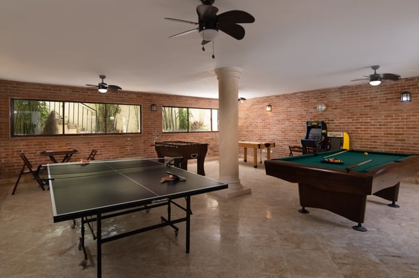 All guests must register with the Casa de Campo Concierge office, and for a small daily fee ($30 per adult per night & $15 per child per night), are granted access to resort areas and amenities. Casa de Campo Resort facilities and amenities include golf courses ($), the fitness centre ($), racquet center ($), restaurants ($) and bars ($). Contact Rental Escapes for more information about pricing. Perfect for large families and active groups, in the grounds of the stunning Casa de Campo Resort & Villas, this one-story classic villa has plenty of room to relax and play. A basement game room features a pool table, air hockey, darts, and more, not to mention the Tennis Center which is located nearby. Outside, a covered patio offers shade from the warm Caribbean sun that shines year-round, while the pool and whirlpool tub are the perfect spot for a refreshing dip.