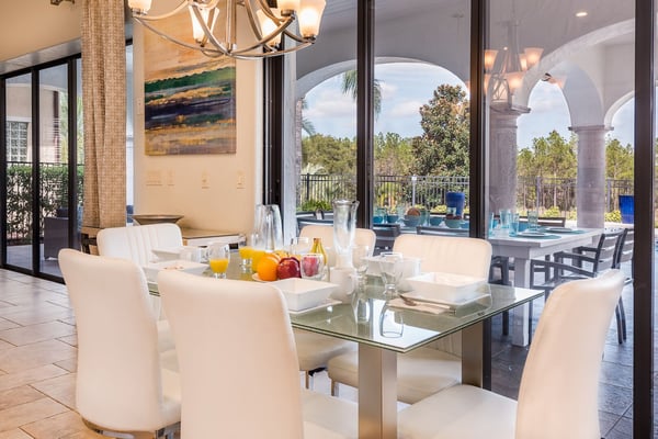 This exceptional custom-built estate, once a private residence in Reunion, has been transformed into a luxurious getaway where no detail was overlooked. Spanning 5,400 square feet of air-conditioned elegance, the home showcases chic design, grand décor, and high-end furnishings throughout. Step inside to gleaming tile floors and an expansive open-concept living area, where plush leather sofas, a flat-screen TV, a cozy fireplace, and a sleek wet bar create the perfect setting for relaxation. The chef’s kitchen is a culinary dream, featuring top-of-the-line stainless steel appliances, stunning granite countertops, a spacious prep island, and a convenient breakfast bar. Enjoy casual dining at the six-seat table or host memorable family meals around the elegant ten-person dining table. Upstairs, a stylish entertainment loft invites friendly competition with a billiards table, card games, and an XBOX console for the gamers in your group. Movie nights come to life in the private, tiered home theater, complete with a large projection screen and ten plush leather recliners. The blacklight, arcade-themed game room is a highlight, offering foosball, air hockey, basketball shootout, racing games, and dual Xbox One consoles for non-stop fun. Each bedroom is a sanctuary of comfort and style. The master suite, wrapped in champagne tones, features a lavish en suite bath with a freestanding tub—ideal for unwinding after long theme park days. A whimsical red and white bunk room pays tribute to an iconic theme park character, complete with custom wood-carved beds that bring a touch of magic to your stay. Outside, the home continues to impress with one of the largest private pool decks in the resort. Enjoy a spectacular pool and spa, an expansive patio for lounging, and a fully equipped summer kitchen—perfect for alfresco dining and entertaining under the Florida sun.