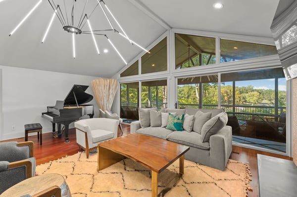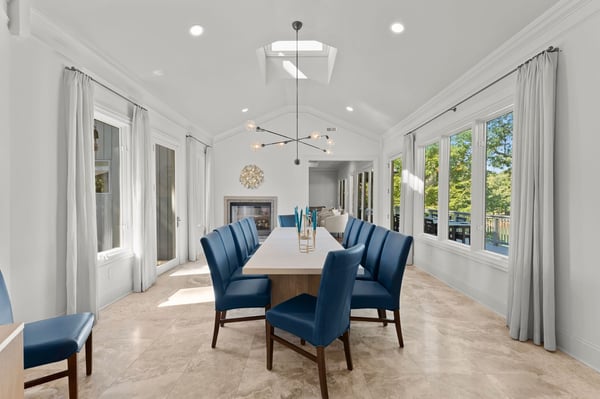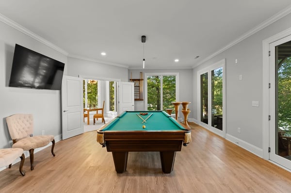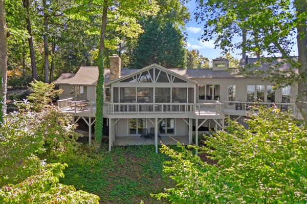 Welcome to Lakeside Luxe, your luxurious lakeside oasis nestled on 1.56 acres in a tranquil cove on Lake Norman. This fully remodelled six-bedroom, six-bathroom retreat is the perfect blend of modern elegance and natural beauty, offering breathtaking water views and refined living spaces that invite you to relax, recharge, and reconnect. As you arrive, the quiet charm of the setting sets the tone for the experience that awaits. Inside, the home opens to bright, spacious interiors where floor-to-ceiling windows flood the rooms with natural light and provide panoramic views of the lake. Every inch of this home has been thoughtfully redesigned, showcasing high-end finishes and contemporary comfort. At the heart of the home is a stunning gourmet kitchen, outfitted with custom cabinetry, integrated appliances, sleek quartz countertops, and a large island perfect for casual gatherings. A nearby breakfast nook with high-top seating is ideal for enjoying coffee as the sun rises over the water. Just beyond the kitchen, the formal living room features cathedral ceilings, a grand piano, and sliders that lead to the expansive deck, making it a welcoming space to gather or simply soak in the views. For special dinners and celebrations, the dining room provides an elegant setting with a table that seats twelve and a dual-sided gas fireplace that connects to a cozy lounge area. This adult family room is warm and inviting, complete with a large sectional sofa, wet bar, shuffleboard table, and stylish décor that opens seamlessly to the deck. An adjacent office area with two desks offers a quiet and functional space for anyone needing to work or study during their stay. The main level is also home to the primary suite, a true sanctuary with incredible lake views, a private porch featuring a swinging daybed, and a spa-like bathroom with a soaking tub, glass walk-in shower, dual vanities, and a bidet. Two additional bedrooms on this level include a queen guest room with a nearby hall bathroom and a second primary suite with a king bed, luxurious en suite, and an attached bunk room with two twin-over-full bunk beds---a fun, cozy space for the kids. Lakeside Luxe also includes two separate lower levels, each with its own unique experience. One lower level features a third primary suite with a king bed, en suite bath, and private deck access. The second lower level feels like a home of its own, offering a game room with a pool table and bar seating, a glass-enclosed card room perfect for poker nights, and a second living area with a sectional and another wet bar. Down the hall, you'll find two more guest bedrooms---one with two twin beds and another with two queen beds---along with two full bathrooms, making this space ideal for larger groups or multiple families. Step outside and discover the true magic of lake living. The expansive deck and screened-in porch are perfect for dining al fresco, lounging in the sun, or winding down under the stars. A beautifully redone boathouse and dock, complete with a new boat lift, make it easy to explore the lake. Whether you're swimming, boating, kayaking, or just relaxing with a glass of wine as the sun sets, the setting is nothing short of spectacular. With its unmatched blend of privacy, luxury, and amenities, Lakeside Luxe is more than just a vacation home---it's an elevated lakefront experience.