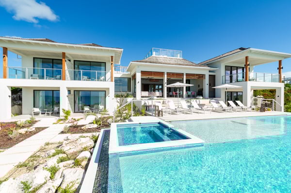 Perched high above the coastline of Turks & Caicos, this stunning 5-bedroom villa was designed to embrace its breathtaking surroundings. Every space has been thoughtfully crafted to maximize natural light, frame spectacular ocean views, and create a seamless connection between indoor and outdoor living. From the moment you arrive, the villa’s unique split-level design invites you to explore its flowing spaces, effortlessly transitioning from the entrance to the oceanfront terraces. Expansive outdoor areas, including a rooftop terrace nestled within the shingle roof, offer stunning vantage points, while the pool and terraces are designed to lead naturally down to the ocean, creating a true sense of harmony with the landscape. The villa's design strikes a perfect balance of privacy and openness, with bedrooms positioned half a level from the Great Room, all offering breathtaking views. Natural materials and an open-concept living area enhance the relaxed, yet elegant ambiance throughout. The villa’s split-level design creates a natural connection between spaces, with all bedrooms just a half-level from the Great Room. An open-plan living, dining, and kitchen area maintains a warm, inviting feel, enhanced by natural materials like native stone, hardwoods, and whitewashed finishes. Expansive terraces, a thoughtfully integrated pool, and a rooftop retreat offer stunning vantage points to soak in the scenery. Designed to flow effortlessly toward the ocean, the outdoor areas embrace the villa’s elevation while maintaining easy accessibility and a sense of tranquillity.
