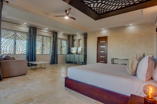 Guests staying within Cap Cana will have access to all resort amenities and facilities. Resort amenities and facilities include a golf course ($), spa ($), restaurants ($), bars ($), fitness centre ($) and tennis centre ($). Are you ready to indulge in the ultimate beachfront escape? Welcome to the Caribbean Egyptian Palace, a breathtaking 11-bedroom villa nestled within the prestigious Cap Cana community in Punta Cana. This luxurious retreat offers an unparalleled experience, where the turquoise waters of the Caribbean Sea meet pristine white sands. With direct access to your own private beach, you’ll wake up to the sound of waves and spend your days basking in the sun, all while enjoying world-class service and amenities. Spanning an impressive 16,500 square feet across four levels, the Caribbean Egyptian Palace is a seamless blend of indoor-outdoor living. The villa’s sophisticated yet inviting design features contemporary decor with neutral tones and elegant Caribbean accents. Expansive terraces and balconies provide breathtaking ocean views, while the infinity pool, Jacuzzi, and private beach bar create the perfect setting for relaxation and entertainment. Whether you choose to unwind on a shaded terrace or lounge by the pool with a refreshing cocktail, this villa offers an unforgettable sanctuary of peace and luxury. Designed with ultimate comfort in mind, each of the 11 master suites is a haven of tranquility, complete with king-sized beds, walk-in closets, ensuite bathrooms, smart TVs, and air conditioning. Some suites provide direct beach access, allowing you to step out onto the sand in just moments. The villa also boasts an entertainment-packed game room, a state-of-the-art spa with a sauna, and an open-air dining area where you can savor gourmet meals prepared by your private chef. At the Caribbean Egyptian Palace, every detail is curated for an extraordinary stay. Your dedicated staff includes a chef, a butler, a bartender, and housekeepers who ensure impeccable service throughout your visit. Whether you’re craving a signature cocktail by the beach, an al fresco dining experience under the stars, or assistance with arranging exclusive Cap Cana activities, your villa manager is always available to cater to your needs. From world-class golf courses to equestrian adventures and fine dining, Cap Cana offers endless possibilities to enhance your Caribbean getaway. Embrace the luxurious serenity of the Caribbean Egyptian Palace, where the ocean is your backyard, and every moment is tailored for your pleasure. This beachfront paradise invites you to create unforgettable memories in a setting of refined elegance and tropical beauty.