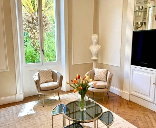 Situated in a serene neighbourhood near the lively centre of Cannes, Villa Kashmir is a beautiful Belle Epoque villa offering elegance and modern comforts. This property is ideal for a wide range of guests, from conference attendees at renowned Cannes events like MIPIM and MIDEM to summer travellers wanting quick access to beaches and top-tier dining. The main villa offers eight spacious bedrooms, comfortably sleeping up to 17 Guests, with an additional independent cottage providing two more bedrooms for four additional guests. Villa Kashmir is designed for effortless entertaining, with vast reception areas, including a 60m² triple reception space and a 60m² terrace overlooking the heated saltwater pool and surrounding gardens. These generous indoor and outdoor areas make it perfect for hosting everything from intimate gatherings to conferences and exhibitions. Inside, a large, fully equipped kitchen caters to gatherings of any size. Additional amenities include a separate office, a private cinema room, a snooker room, a gym, and a sauna, offering a well-rounded experience for both business and leisure guests. The beautifully landscaped gardens are home to a variety of plant species and include secluded areas perfect for reading or relaxing in a peaceful setting. Expansive sunbathing terraces and the large heated swimming pool with a covered pool house complete the outdoor offerings. Combining architectural grandeur with modern facilities and set amid lush gardens, Villa Kashmir is a truly exceptional rental property in Cannes, blending timeless charm with convenience for an unforgettable stay.