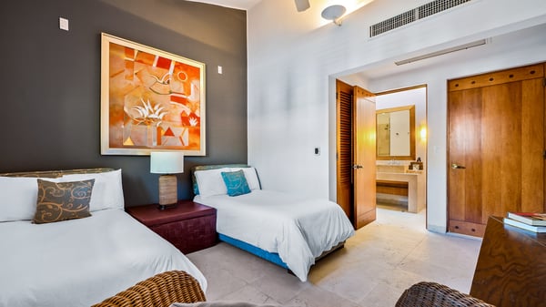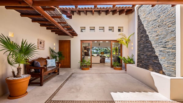 Positioned in one of the closest spots to the ocean in Las Palmas, Punta Mita, this refined villa offers front-row views of the Pacific and the famed “Tail of the Whaleˮ rock formation and signature golf hole—a rare vantage point that blends oceanfront beauty with premier golf-front prestige. Just 400 meters from the beach and overlooking the fairways of the Pacifico Golf Course, this stylish retreat is designed for comfort, legance, and ease. The villa features spacious living areas, a shaded terrace, and an al fresco dining space—perfect for relaxing with loved ones. Inside, the open layout includes a sophisticated living and dining area. Floor-to-ceiling glass doors open onto a panoramic terrace, where ocean breezes and natural light create a tranquil atmosphere. Each room offers a setting of privacy and serenity, with ample space and thoughtful amenities. As part of the Las Palmas gated community, guests enjoy exclusive access to the renowned Pacifico Beach Club. The villa also includes the use of a six-seater golf cart and Premier Golf Membership privileges, granting access (fees apply) to Punta Mitaʼs residents-only beach clubs, tennis courts, spa, fitness center, and both Jack Nicklaus Signature golf courses. Whether golfing, lounging by the pool, this private Las Palmas villa offers the perfect balance of luxury and leisure.