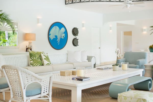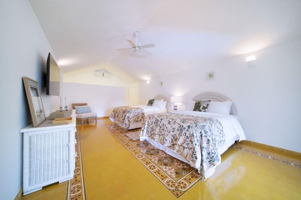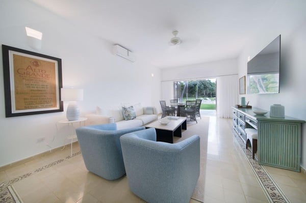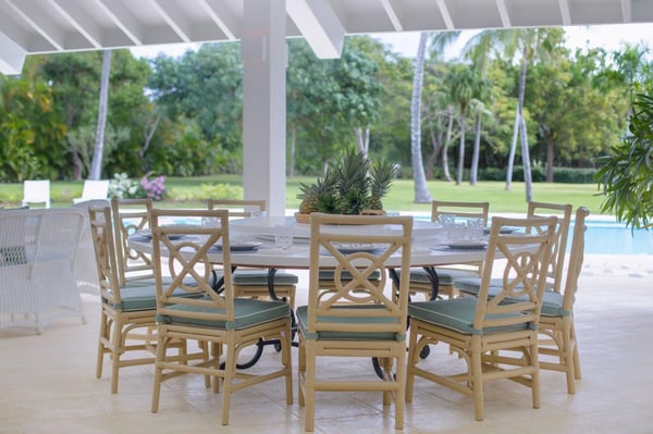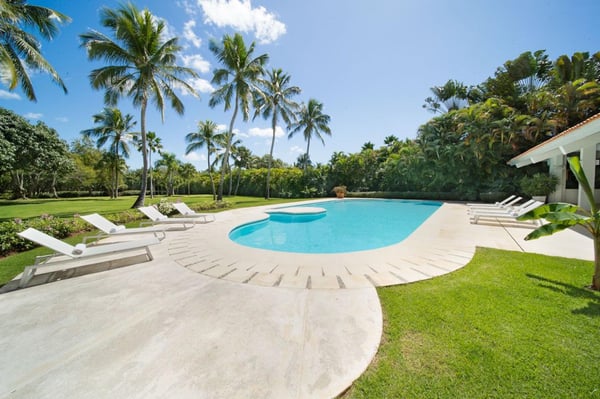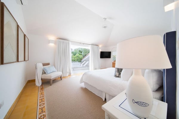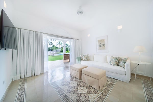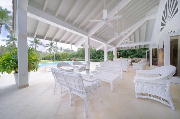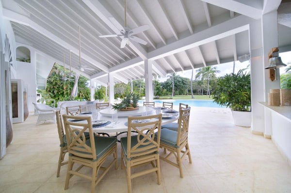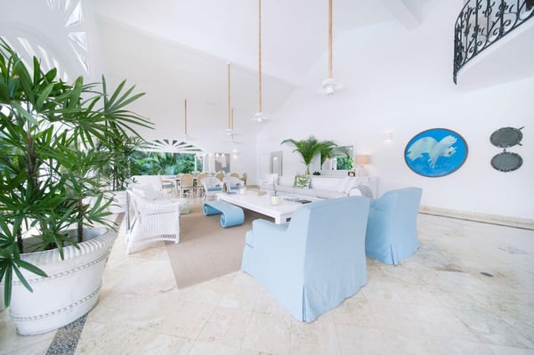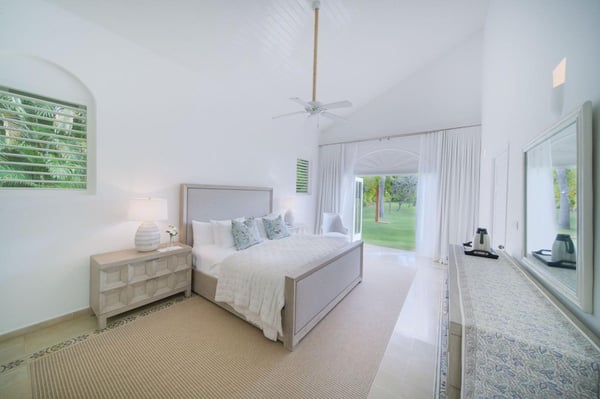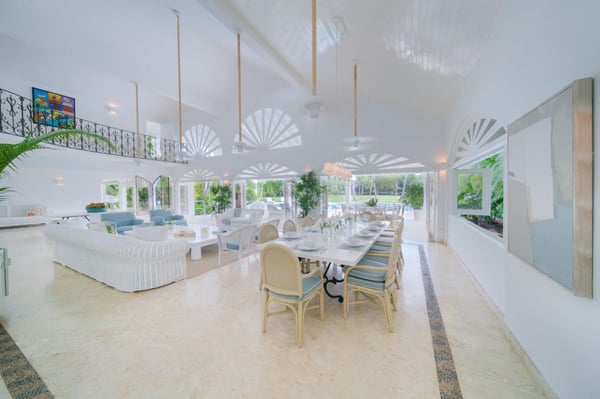 All guests must register with the Casa de Campo Concierge offices, and for a small daily fee ($30 per adult per night & $15 per child per night), are granted access to resort areas and amenities. Casa de Campo Resort facilities and amenities include golf courses ($), the fitness centre ($), racquet center ($), restaurants ($) and bars ($). Contact Rental Escapes for more information about pricing. Welcome to Villa Nautilius, a beautifully renovated two-story retreat located in the heart of Casa de Campo Resort. This serene, east-facing villa overlooks the lush fairways of the La Romana Country Club golf course and is just a 5-minute walk from the white sands of Minitas Beach. Designed in classic Caribbean style, Nautilus blends natural elegance with relaxed sophistication. High ceilings, whitewashed interiors, and open living spaces invite in the island breeze, while organic materials such as coralina stone, wicker, and warm woods create a sense of effortless comfort. Surrounded by a spacious green lawn dotted with coconut palms, the villa’s outdoor spaces are made for unwinding. Lounge by the sparkling private pool or enjoy an al fresco meal on the expansive open terrace. Inside, five well-appointed, air-conditioned bedrooms provide restful privacy. The home is set in a peaceful, exclusive enclave and comes with a dedicated, professionally trained staff committed to delivering exceptional service. Villa Nautilius is a shining example of Caribbean Paradise Homes’ commitment to curated luxury—perfect for those seeking both tranquility and proximity to Casa de Campo’s finest offerings.
