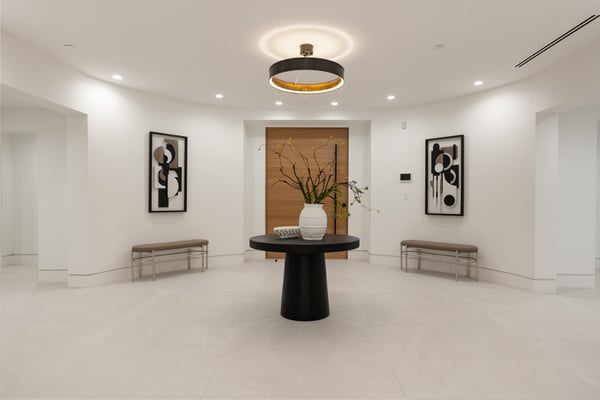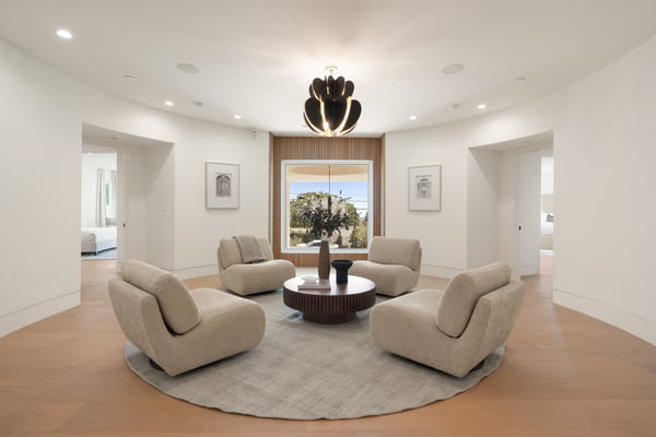 Located in the serene Lower Mandeville Canyon, the Noble Crest is a study in understated grandeur and meticulous craftsmanship. Set on nearly an acre of flat, private grounds, the residence blends timeless elegance with modern sophistication. The main house spans two stories, anchored by a dramatic double staircase in the grand entry, leading to expansive living spaces framed by curved walls and detailed finishes of granite, marble, and fine woodwork. The outdoor space evokes the charm of a European villa, with a manicured lawn, a pool with a waterfall, and a pavilion equipped with a BBQ and bar.