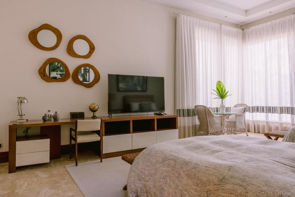 Guests staying within Cap Cana will have access to all resort amenities and facilities. Resort amenities and facilities include a golf course ($), spa ($), restaurants ($), bars ($), fitness centre ($) and tennis centre ($). Step into luxury at Villa Fairway Luxe, a stunning 6-bedroom, 7-bathroom residence located in the prestigious Founders Golf community within Cap Cana. Overlooking the lush greens of the Punta Espada golf course, this property combines Caribbean charm with modern elegance, offering the perfect setting for family gatherings, group getaways, or a special celebration. With space for up to 12 guests, each of the six bedrooms is designed for maximum comfort, featuring ensuite bathrooms, air conditioning, and fine finishes. Whether you’re lounging in the spacious living areas, enjoying chef-prepared meals, or relaxing by the pool, every corner of this villa exudes sophistication and warmth. Outdoors, the villa boasts expansive terraces and lush tropical gardens — perfect for sunset cocktails, al fresco dining, or simply soaking in the serene golf course views. Guests can also enjoy a dedicated entertainment room with a pool table, ideal for family fun or friendly games after a day at the beach or on the golf course. To make your stay even more special, the villa is fully staffed with daily housekeeping and a private chef, who will assist with every detail of your trip, from personalized dining experiences to arranging activities around Cap Cana. Guests also enjoy easy access to Cap Cana’s world-class amenities: Juanillo Beach, the Marina, restaurants, bars, tennis courts, equestrian center, and water activities.