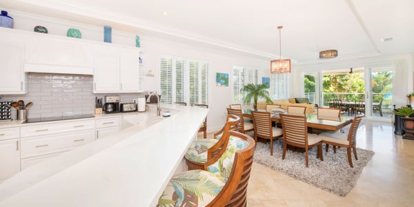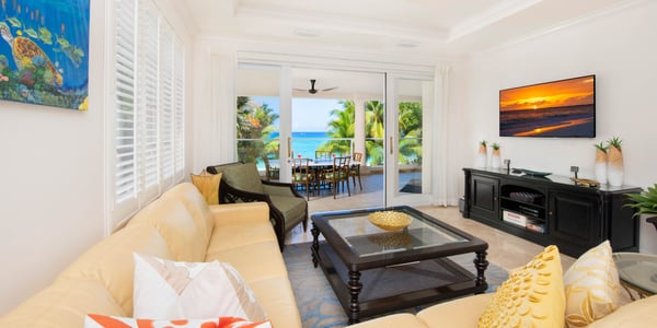 Welcome to SeaBreeze #3, one of only nine luxury condos within a tranquil residential resort nestled along the northern shore of Seven Mile Beach. Travelers seeking spacious accommodations with resort-like amenities and breathtaking tropical views need to look no further. Melt your worries away in the resort’s heated spa or beachfront infinity pool. Pool heat is provided complimentary during winter-month stays. Sun loungers, shared propane grills, and an outdoor shower line the spacious pool deck. Just steps off the pool is Seven Mile Beach, one of the Caribbean’s top beaches. Roped off for privacy, our guests can enjoy a barefoot beachfront with forever blue ocean views stretching toward the horizon. A seaside hammock and beach cabana provide shady relief from the island sun. The large heated spa attached to the pool is a great way to enjoy a sunset. Enjoy long walks along the beach, fantastic snorkeling at nearby Cemetery Beach, or memorable sunsets with your toes in the sand. Nesting turtles during summer months are an exotic sight to behold. SeaBreeze #3 offers 3,000 sq. ft. of livable space across four bedroom suites, a media den with SmartTV, and a private ocean balcony. Enjoy elevated views and sunset vistas off your second-floor balcony. A gourmet kitchen comes equipped with top-of-the-line appliances, plus cookware, flatware, glassware, and cutlery. A formal dining table sits adjacent to the kitchen with seating for 8. Additional seating on the kitchen peninsula seats 4 more guests. Hire a private chef for an evening of fine dining or a champagne brunch to start your day in paradise. Beach Notes Seabreeze is located immediately south of Seven Mile Beach's famous Cemetery Reef, known for its snorkeling and idyllic beachfront. The beach directly behind Seabreeze is barefoot soft sand. However, the shoreline height can vary due to tides and storms. Some years it can be a totally sandy barefoot entry into the ocean. Whereas, in others, storms may reveal a shelf of hard Ironshore that requires barefoot ocean access by our neighbor's beach. The beaches in Cayman are technically "owned by the crown" and public, so guests can easily walk north or south around the Ironshore to enter the water for swimming and snorkeling. The sandy area directly behind Seabreeze is private to the owners and their guests.