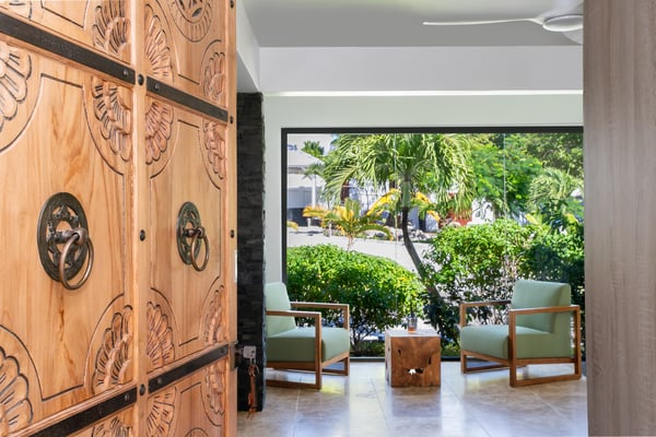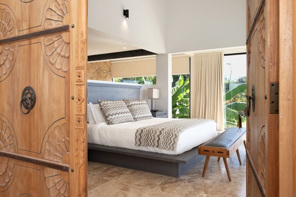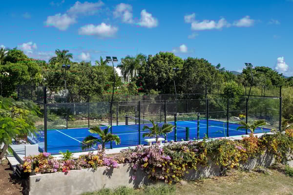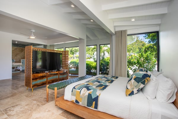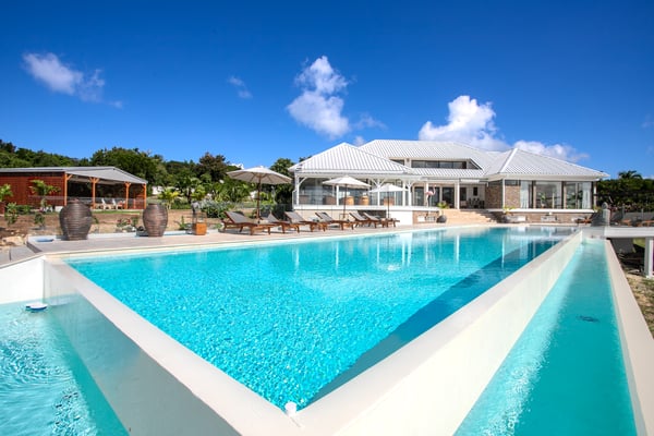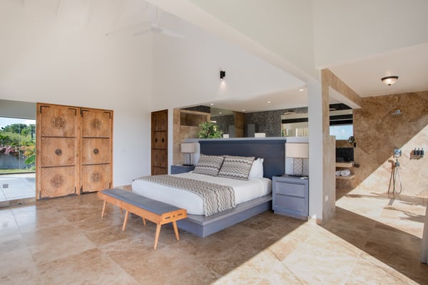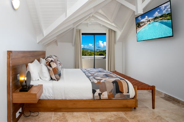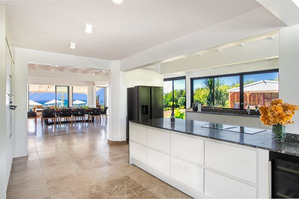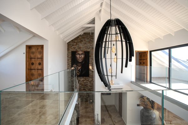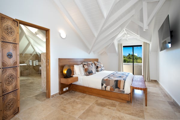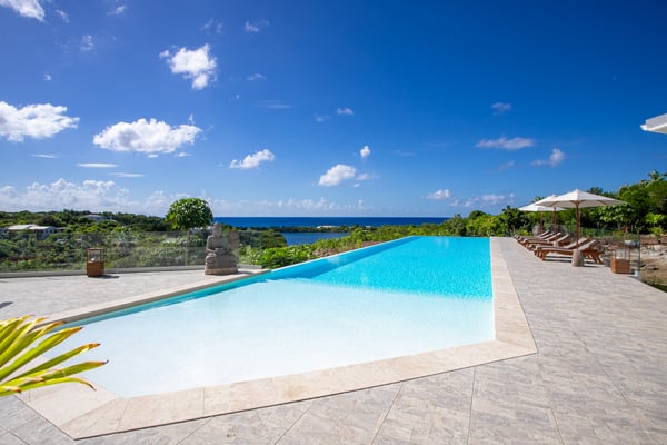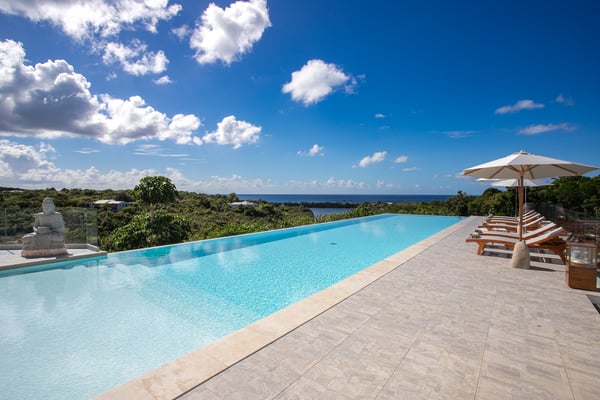 Villa Debbie is an extraordinary luxury retreat where modern architecture, organic design, and Caribbean ease come together in perfect harmony. From the moment you arrive, the experience feels both impressive and welcoming. A sweeping roundabout driveway offers ample parking and sets the stage for what lies ahead. As you step closer, your first glimpse reveals the private padel court, a beautifully appointed outdoor gazebo, and a striking two-meter-wide wooden door that opens into the heart of the villa. Inside, Villa Debbie immediately envelops you in a Balinese-inspired yet distinctly modern atmosphere. Soft organic shapes, natural materials, and thoughtful design create a sense of warmth and calm despite the villa’s impressive scale. A circular white sofa anchors the living space, inviting long conversations and relaxed evenings. The fully open floor plan, surrounded by floor-to-ceiling windows on all sides, blurs the boundary between indoors and outdoors, delivering a true inside-out living experience and setting the tone for an effortless Caribbean escape. To the right, the sleek, fully equipped modern kitchen is both functional and visually stunning. Bathed in natural light, it offers views of the surrounding outdoor spaces from every angle, making even the simplest moments feel special. A large dining table seamlessly connects the kitchen and living areas, perfectly positioned to enjoy ocean views while gathering with family and friends. Sliding glass doors extend the kitchen into the garden, unveiling a generous covered terrace with inviting lounge seating and an elegant outdoor dining space. This space is ideal for alfresco meals, shaded afternoons, or evenings cooled by the ocean breeze and gentle ceiling fans that enhance the villa’s grand yet relaxed ambiance. From the main living area, a covered terrace beckons, offering multiple seating areas that strike a perfect balance between privacy and togetherness. Whether you wish to socialize or retreat into a quiet corner, Villa Debbie offers space for every mood. The undeniable centrepiece of the villa is the extraordinary infinity pool. This expansive 30-meter swimming pool gently slopes toward uninterrupted ocean views. Lounge chairs line the pool, automatic umbrellas provide shade at the touch of a button, inviting you to enjoy the sunshine, the sea breeze, and refreshing swims throughout the day. The primary suite, located on the ground floor, is a private sanctuary. Entering through beautifully crafted wooden doors, you’re welcomed into a serene retreat where ocean and pool views unfold before you. Wake each morning to soft light as automated blackout curtains glide open, revealing the Caribbean horizon. The spa-style bathroom, finished with elegant dark accents, offers a luxurious space to unwind. Enjoy a quiet coffee in the bedroom’s private seating area overlooking the sea, or step outside onto the adjoining terrace to feel the island come alive. A second ground-floor bedroom offers the same sense of grandeur and comfort, with views over the lush gardens at the front of the villa. Accessible from both inside and outside, this suite embraces an open, modern Balinese concept while maintaining complete privacy through electrically controlled curtains. Upstairs, two additional bedrooms can be found. Each is equally spacious, designed with clean lines, natural stone accents, and a warm, modern aesthetic that instantly feels like home. See section 'Sleeping Arrangements' for all bedroom amenities. Beyond its architectural beauty and refined interiors, Villa Debbie offers exceptional amenities, including a private padel court for guests who wish to stay active or enjoy friendly matches in a spectacular setting. Villa Debbie is grand yet peaceful, modern yet inviting, and perfectly balanced between indoor comfort and outdoor living. With abundant shade, generous gathering spaces, private retreats, and refined luxury at every turn, this remarkable villa captures the very essence of elevated Caribbean living.
