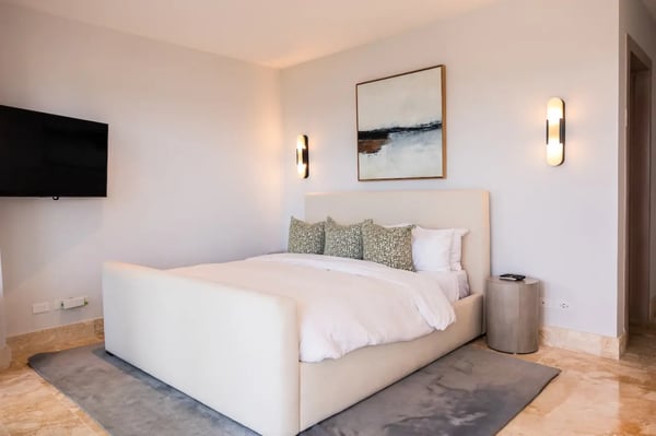 Guests staying within Cap Cana will have access to all resort amenities and facilities. Resort amenities and facilities include a golf course ($), spa ($), restaurants ($), bars ($), fitness centre ($) and tennis centre ($). During your stay at Costa Azul, you'll enjoy a host of exclusive 5-star services and access to some of the Caribbean's finest amenities. These include the Jack Nicklaus Signature golf course (Punta Espada), stunning white-sand beaches, tennis courts, equestrian center, marina, restaurants, bars, and much more. Experience an unforgettable Caribbean getaway filled with sun, beach, tennis, pickleball, fishing, and golf at this remarkable location. The villa is located oceanfront and has a beautiful view of the ocean, an ocean lagoon and hole 4 at Punta Espada golf course. Costa Azul is a gorgeous 7-bedroom, 7.5 bath, 2-story luxury oceanfront villa with a private beach, pool, pickleball/basketball court, and rooftop Jacuzzi. With its unique design, this property exudes a sleek, modern aesthetic complemented by stylish furniture and amazing amenities. Step through the impressive, yet welcoming entryway that features a floating roof and be welcomed into a sanctuary with a palm studded walkway leading past the guest bungalow and covered pickleball/basketball court and into the main house. The main house offers a spacious, air-conditioned living room with bar area, dining table, and TV lounge. This space connects seamlessly to the beautiful outdoor areas of the property, which includes a large swimming pool (with wading, toddler and adult depths as well as a lap lane), poolside deck with furniture and sunbeds. From the pool area, you’ll have access to your own private beach where you can easily slip into the warm, Caribbean waters while enjoying a front row view of the Punta Espada golf course. NOTE: The ocean may at times not be suitable for swimming and doing so is always at your own risk. A new addition to the outdoor area includes a spacious beachside gazebo with an outdoor kitchen, a covered dining area and a lounge area with a fire pit. This is the perfect place to relax and enjoy the warm tropical nights. Enjoy the rooftop jacuzzi with even more spectacular ocean and golf views during the day or indulge in a relaxing stargazing soak after dark. The large kitchen is fully equipped, and the rental includes a private chef who will expertly prepare all your meals during your stay, allowing you to unwind and savor every moment of your vacation (food and beverages not included). Keep up your fitness routine and play a game of pickleball or basketball at your own private court! The pickleball/basketball court is covered and lit so you can play in the shade during the day or under the lights at night. This new addition to the villa will surely provide hours of fun for everyone!