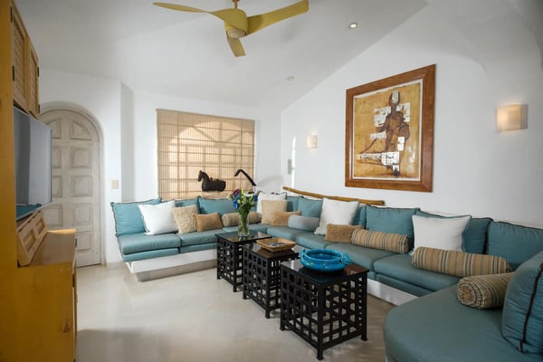 With ocean views from nearly every room of this sprawling home, Villa Buena Vida delights with luxury features and resort-style amenities. Designed to accommodate large and extended families and friends, the home includes an excess of admirable outdoor space, complete with a cascading swimming pool. Complimented by a thatched palapa and surrounded by plenty of entertaining space, this luxury villa also includes an outdoor fireplace, a fire pit, and plenty of room to relax alongside the ocean breeze. With an abundance of outdoor and indoor dining space, the home includes the addition of a breakfast bar within the gourmet kitchen, which has been outfitted with dual ovens and matching stainless steel appliances. The comfortable main living area of the home is open and decorated with subtle sophistication, seamlessly blending the indoor and outdoor spaces as one with walls of windows and glass doors. This spacious home includes enough room to sleep 14, with six bedrooms, all of which include an ensuite bath. In addition, most of the rooms include King-sized beds, complete with a private terrace and ocean view, while one bedroom is perfect for the younger crowd, as it is outfitted with three matching bunk-beds. Situated within one of the most desirable golf communities in the region, Villa Buena Vida offers you a vacation home surrounded by premiere outdoor recreation. Designed by Jack Nicklaus, the nearby Desert Course provides a world-class golf course setting. At Villa Buena Vida you'll find the perfect oceanside setting and fantastic water views, all while being one kilometer away from a protected swimming beach.
