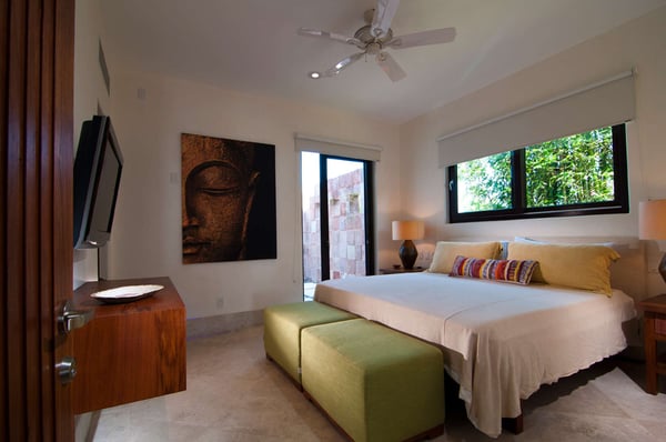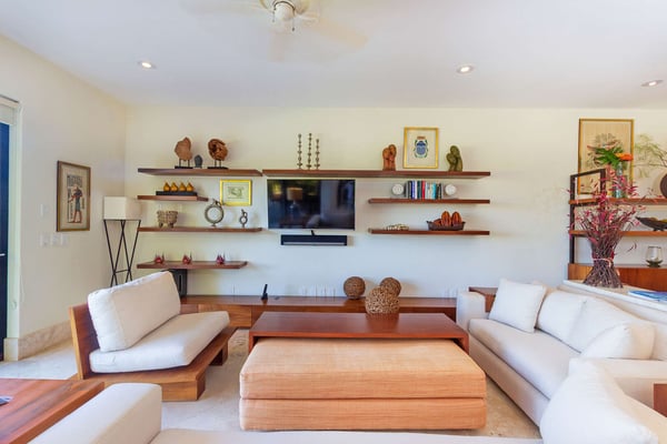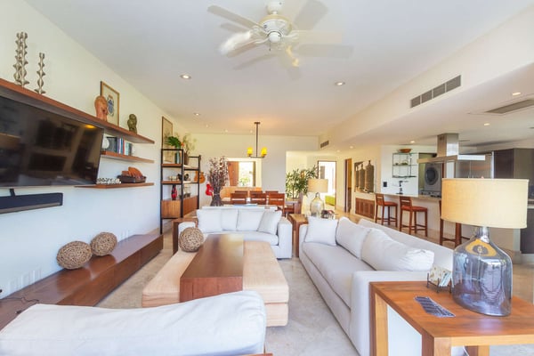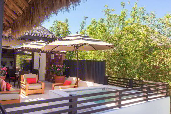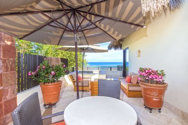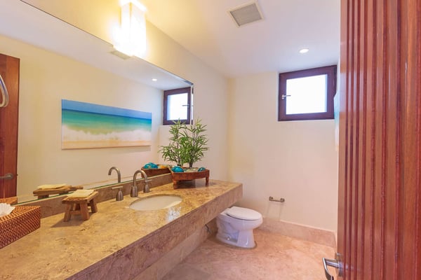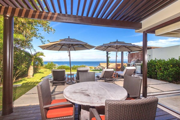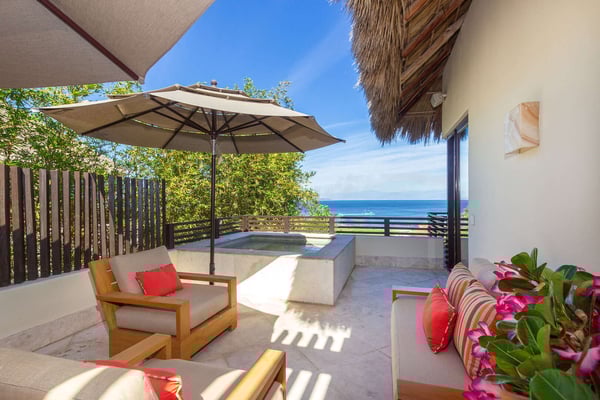 Construction is taking place nearby and may create some noise issues. Contact a villa specialist for more information about how this may impact your stay. The Premier Golf Membership grants access to Pacifico Golf Course ($), Bahia Golf Course ($), the Tennis Centre ($), the Fitness Center ($), El Surf Club based on min. consumption fee ($), St.Regis Beach Club based on availability and min. consumption fee ($), Pacifico Beach Club, Sufí Ocean Club and Kupuri Beach Club. Contact one of our Villa Specialists for more information. Villa Aguamarina is a refined two-story villa that spans 3,807 sq. ft. of thoughtfully designed indoor and outdoor living space. Three well-appointed bedrooms, each with an en-suite bathroom and closet, offer privacy and comfort. The main level features a fully equipped kitchen, powder room, and zen patio complete with a cascading water wall and outdoor shower. Open-concept living spaces extend to a garden setting with a covered terrace, outdoor grill, and private pool detailed in Venetian tiles. Above, both the primary and second bedrooms open onto a bright terrace with Jacuzzi, perfect for outdoor living.