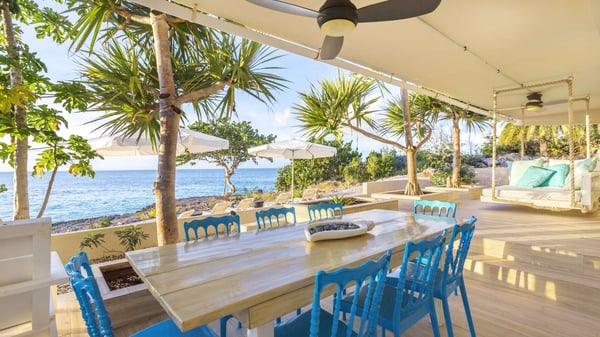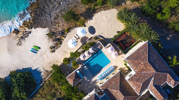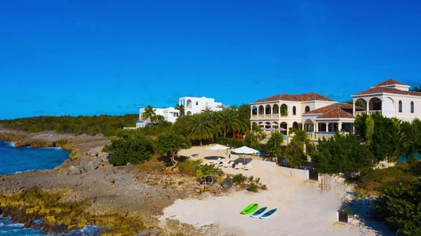 Step from the main house to the expansive private pool deck, to the beach, at this playful A-lister’s hideaway. Take the dramatic 5-bedroom main house with two king primary suites, or the modern new 4-bedroom super cool beach house (just next door and practically on the sand!) for an intimate beach lover experience. Or, combine both properties to accommodate up to 18 guests. The original Sandcastle Villa and the newly added Beach House offer exceptional service and privacy on Anguilla. Sandcastle Villa features a gorgeous pool overlooking the Caribbean Sea, a highly attentive staff, lush landscaping, and amazing views from the private balconies attached to each master suite. No detail is left to chance to ensure that each guest's experience is exceptional at this island lover’s paradise. A full gym and playground keep active guests and children of all ages happy. Expansive common spaces, both indoors and out, present fabulous opportunities for entertaining or savoring family time. The 'can't-be-missed' Sandcastle Villa and Beach House is an amazing Anguilla island experience, whether booked individually or separately. Choose the one that matches your style, or reserve both for your extended family vacation or event in paradise!