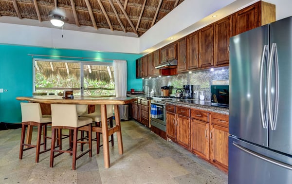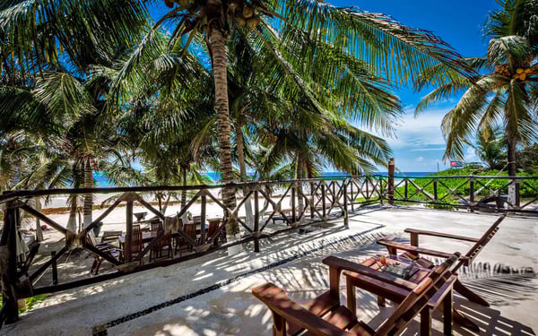 Hacienda Paraiso is located within Tulum National Park. Each guest will be charge per day and be given a bracelet which grants you access to the park. Payment is made directly at the park gates by debit or credit card. Set on one of world's most incredible beaches, right inside what is known as the National Park of Tulum, and only 500 meters from the world-famous Mayan ruins, is this magnificent brand-new beach Mansion, with the finest white sandy beach and the clearest turquoise Caribbean Sea with no rocks around for a perfect swim, only ten steps away from your door step. This beach home is perfect for family reunions or a private de luxe event such as weddings. Hacienda Paraiso has six-bedroom suites and seven bathrooms, all but one facing the Caribbean Sea, with one large top terrace for great entertainment and four more private terraces in the bedrooms for a relaxing sunbathing session. The house its high end fully equipped and furnished, fulfilling the most highly demanding guest for all their needs, air-conditioned in all the bedrooms, satellite television and wireless internet included, Hacienda Paraiso is the perfect home to enjoy a once-in-a-lifetime vacation, it is right next to popular beach club and offers all the hotel amenities such as daily maid service, round the clock and private security. The beach club its open from 11 AM until 6 PM offering a great international seafood menu. There is also a therapeutic spa for a relaxing massage or deep tissue treatment. The beach club also offers a small marina service for charter fishing boats or amazing snorkeling tours out to the coral reef located, just a five-minute boat ride away, but if you are a little bit more adventurous and like a few extreme sports, there is a kiteboarding surfing school a few steps away.