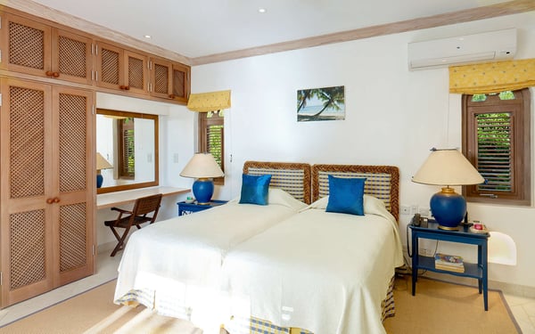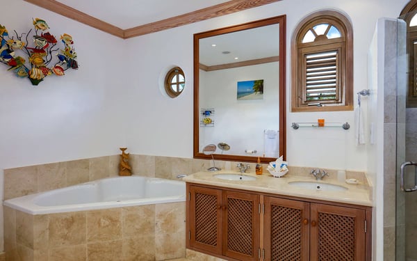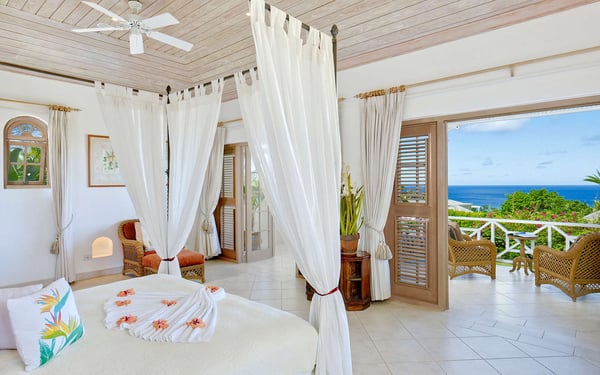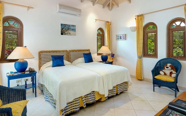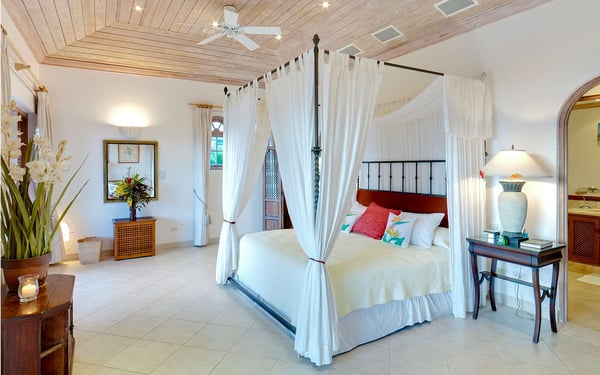 The Sugar Hill Resort community offers a number of resort amenities. Guests will have access to the Clubhouse, restaurant, resort swimming pools and tennis courts. Overlooking the Caribbean Sea, Oceana is a magnificent four-bedroom estate villa on the prime location of Ocean Ridge in the exclusive gated community of Sugar Hill. Secluded amidst tropical trees and shrubs, including frangipani, bougainvillea, ginger lilies, banana and coconut palms, and approached via a private driveway adjacent to the house, Oceana maximizes the benefits of its superb position with the enjoyment of tropical living. The internal design is stunning, with elegantly curved doors and windows in natural wood reflecting a cloister-like ambiance within the coral stone walls. The matching jalousie shutters throughout the house add a further touch of refinement, and provide a cooling sea breeze in the living areas to complement the ceiling fans. There are three bedrooms in the main house, with the fourth in a separate self-contained cottage in the grounds. All bedrooms have air conditioning, ceiling fans, walk-in closets and en suite bathrooms with marble throughout. The living room opens out onto the expansive covered terrace through two sets of French windows. Beyond is the large pool deck, the gardens and the azure sea. On the right the hall leads to the lower bedroom wing with its own hallway and door for additional privacy and quietness. Across the hall is a twin bedroom, where the beds can also be arranged as a king bed, with a private patio. At the end of the hallway is the Queen Bedroom Suite, with sitting area, which opens through French windows onto both the pool deck and the covered terrace. The tower, reminiscent of a medieval bell-tower, is a feature of the house with its high vaulted ceiling and ornate windows. At the top of the stairs you enter the master bedroom , with super king four poster bed and separate dressing room. The en suite bathroom has a large corner bath tub, a separate shower and twin basins. Running the length of the master suite and approached through two sets of French windows is its private veranda, offering truly spectacular westerly views of the Caribbean Sea. The picturesque, partially open-air dining room looking out towards the sea is an impressive feature of the house, with its own internal garden and cathedral ceiling. The spectacular black granite dining table on carved coral pedestals is complemented by a matching built-in bar, the perfect place for cocktails as you watch the sunset on the sea. Next to the house is the self-contained, air-conditioned, one-bedroom cottage with ensuite bathroom and separate kitchen. This can be configured as twin beds or king-size as required. Guests of Oceana have the use of all the Sugar Hill amenities. These include a clubhouse with large pool, restaurant, fully-equipped, air-conditioned fitness centre and members lounge, as well as the first-class David Lloyd tennis facilities. Sugar Hill is a gated community with security guards both at the gate and on patrol 24 hours a day.