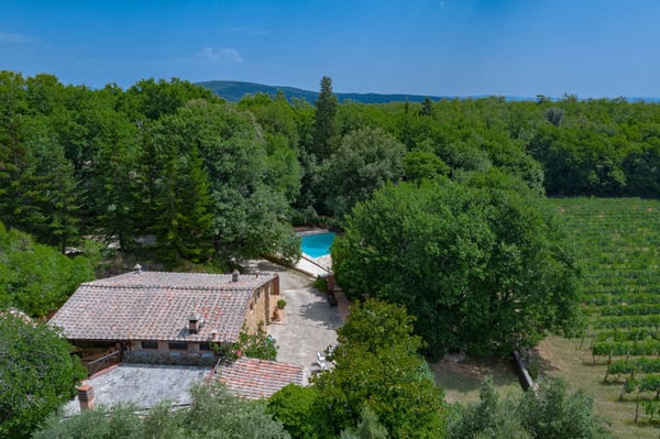 Surrounded by a picture-perfect landscape, near the quaint village of Sovicille and only a 20-minute drive from Siena, Allegra is an elegant Italian villa composed of a main building having approx. 2,800 square feet of living space, and an independent wing of approx. 680 square feet and with an independent entrance. Hosting up to 10 guests, this intimate haven is ideal for private getaways and family reunions. The villa’s interiors feature a mix of elegant antiques blended with contemporary furniture and modern amenities while the exterior architecture reflects the best of traditional Tuscan design. Villa Allegra offers stunning views overlooking the beautiful estate of Trecciano with its well-tended vineyard rows. Discover the rich past and present of Tuscany while staying at Villa Allegra, the perfect place to serve as a comfortable base for discerning visitors and wine-lovers!