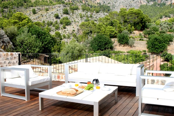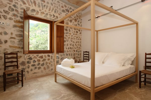 Combining to perfection the highest standards of modern comfort with its rustic features dating from the 17th century, this stunning property is located in a quiet area approximately a five to ten-minute drive to the nearest beach in Port de Sóller, it offers a very unique holiday experience for larger families or groups of friends. The large garden is filled with scenic spots to relax in the Mallorca sunshine. Laze on the terrace under a shady canopy or stretch out on a poolside daybed in sheer bliss. Swim the length of the pool as you revel in the view of the mountains and countryside, or dine al-fresco overlooking the pool. Inside is an equally happy blend of traditional, yet sympathetic modern refurbishment. The two lounges, cozy and snug, and the smart, well-equipped kitchen with amazing views, enjoy a tasteful blend of the traditional Mallorca farmhouse with modern Mallorca chic. The property also offers a further 'prep' kitchen on the lower floor and includes all modern features such as air conditioning, central heating, wireless internet access, a sound system, and satellite TV. The accommodation offers sleeping space for up to twelve people with six double bedrooms, all with en-suite bathrooms. License Number: ET/3413