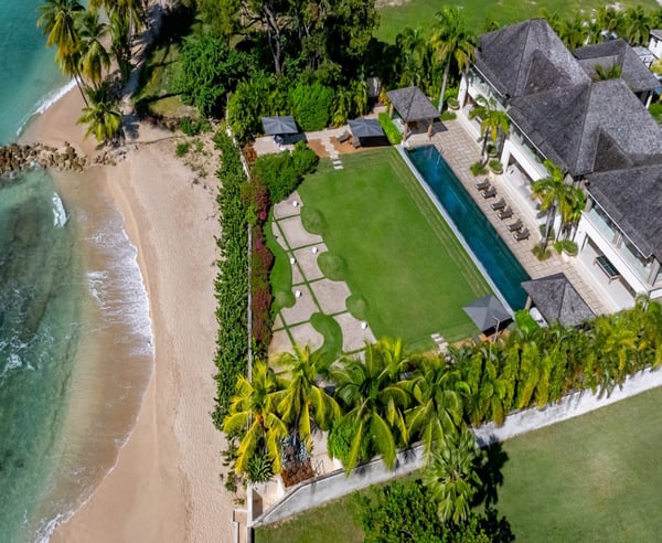 The clever design brings the outside in, so you can enjoy incredible views of your infinity pool and the sea beyond from the comfort of your spacious, open plan living area. Gated and private, your luxury beach villa combines modern comforts with stylish living. From the Boffi kitchen and designer furnishings – think Ralph Lauren and Christian Liaigre - to the five en-suite bedrooms with sea-facing terraces, No expense has been spared to ensure a stay at Godings Beach House is truly special. There’s even a state-of-the-art gym, glass-walled study and home cinema room, Not to mention a range of top-end water sports equipment. A team of professional staff is on hand at your Barbados villa to tend to your every need. Your private cook will tailor menus to your exact taste, while your house manager can arrange everything from unforgettable dining experiences at some of the island’s most exclusive restaurants, to sunrise yoga sessions and stand-up paddle boarding adventures. A double staircase with feature Verpan seashell chandelier leads upstairs to five spacious en-suite bedrooms. A few have four-poster beds dressed with white linen, and all have American oak flooring, Ralph Lauren bed stools and a smattering of other unique design pieces. Each bedroom has a walk-in dressing room, private terrace and luxury bathroom furnished with Hansgrohe rain shower, mosaic tiles from Ann Sacks and marble vanities. The master suite’s large bathtub sits at the base of a floor-to-ceiling window offering sweeping garden views down to the beach. The main entrance with Holly Hunt consoles leads to the living area which is open plan and spacious with neutral tones, pale limestone flooring and an impressive local coral feature wall. Large windows make the most of the surrounding sea and pool views. The living and dining areas are furnished with designer pieces from the likes of Maxalto, Christian Liaigre and Ralph Lauren as well as a pair of B&B Italia sofas. The stylish Boffi kitchen is fully equipped with all mod cons, a large breakfast table and a wall-mounted TV. There are a few dining options to choose from. Dine inside, around the grand bespoke Whetstone Oak dining table, or al fresco, on one of two shaded dining areas for delicious lazy lunches or an evening BBQ under the stars. Your personal cook will be happy to tailor menus to your party’s preferences, using the designated chef's kitchen. The house also offers a glass-walled study, a state-of-the-art gym and a media room where film fans can enjoy access to every movie on iTunes and Netflix, streamed directly from their iPad or iPhone to a large cinema screen. These rooms boast stunning coastal art pieces by Nicola Bealing, from Cornwall, and Guy Leclef. Sonos is also available in all main rooms for music streaming. Godings Beach House sits in approximately 1.2 acres of landscaped gardens, featuring two shaded dining areas and a yoga pavilion. With plenty of spots to enjoy a perfectly mixed cocktail, palm trees and scented shrubs scatter the grounds, with a pebbled path leading directly to a protected beach where you might be lucky enough to witness newly hatched turtles making their way to the sea.
