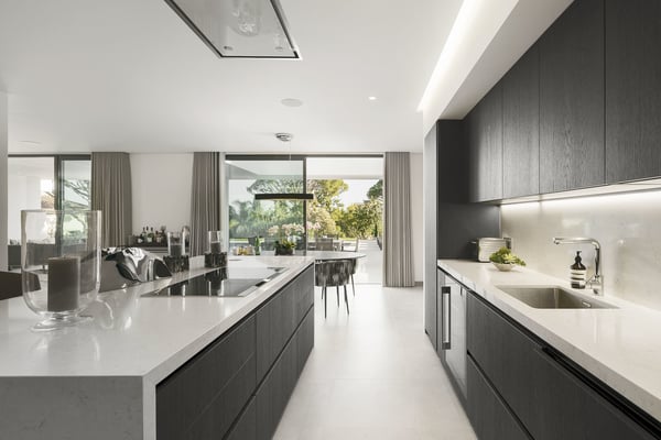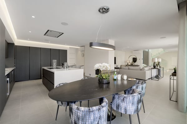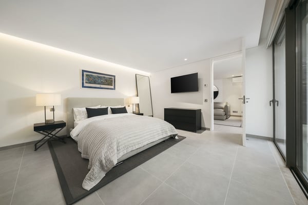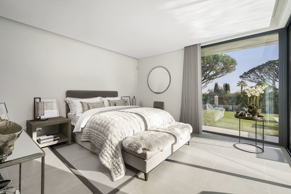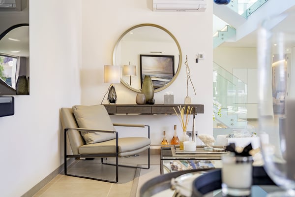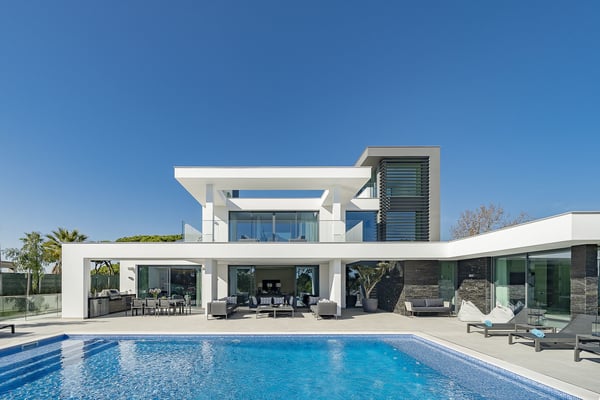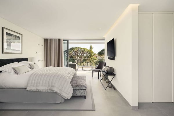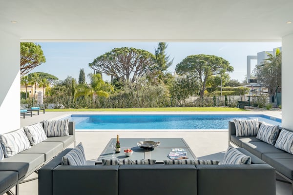 This stylish five-bedroom property sits in a prime location in Vale do Lobo, within walking distance from the beach, golf and restaurants: the ideal choice for a relaxing holiday in the Algarve. Elegantly furnished and decorated with neutral colors according to a modern taste, this villa is bright and spacious with open plan living areas connected to several outdoor areas. Quality garden dining and living furniture complete the outdoor space and relaxation areas around the pool. Five individually appointed, luxury bedrooms are arranged over three floors. This property is available for long-term & short-term rentals. Mature grounds with shrubs and lawn areas. Private pool with Roman-style steps, sunbathing are, covered terrace with outdoor dining facilities, gas barbecue and covered seating area.