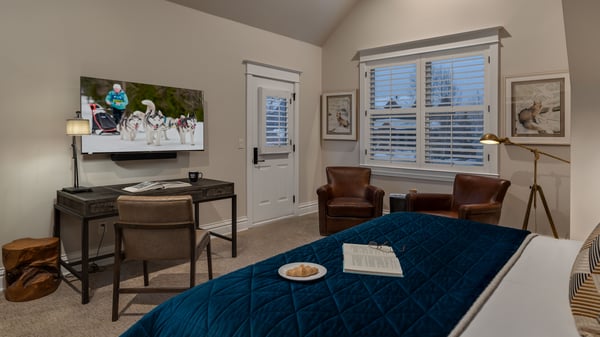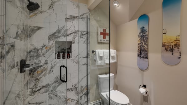 Ski Butlers offers you the best rental experience in the industry. No more lines. Ski Butlers is a full-service ski and snowboard company that delivers the equipment to you. Contact a villa specialist for more information. A prime downtown location and historic charm combine in this multi-level 3,600 square foot home with a lovely carriage apartment. This modern 6-bedroom home enjoys ski slope views and is in the heart of historic downtown Breckenridge, making walking to shops and restaurants a breeze. Two living areas have plenty of comfortable seating, a cozy fireplace, and a large flat-screen TV. Enjoy views of the ski area from the front windows. An additional table with seating for 4 is great for playing games or enjoying breakfast. The chefs in your group will love the beautiful gourmet kitchen with high-end appliances and plenty of counter space and seating for four onlookers at the kitchen island. An elegant dining area is nearby with seating for 8 with a beautiful fireplace, the perfect place to catch up after a day of adventure. Gaze out into the night sky from the outdoor lounge area in the summer, or bench swing on the front porch. Relax on the outdoor patio with multiple chairs and tables, take advantage of the bbq grill for al fresco dining, then enjoy a soak under the stars in the private hot tub. A beautiful staircase by the entry leads to the primary suite with a king-size bed, a private deck with unparalleled views of the ski slopes, a work desk, and a beautiful ensuite with double vanity, a large walk-in shower, and a large closet with French door access. Across the hall is a bedroom with a king bed (or two XL twins), a small private balcony, and an ensuite bath. On the lower level are two additional king suites, and a bunkroom with a twin-over-twin bunk. Each downstairs bedroom has an attached ensuite bathroom. An additional shared bath is in the hallway. For added privacy, a separate carriage guesthouse is conveniently located behind the main house, above the garage. This one-bedroom, one-bathroom retreat sleeps an additional 4 guests, with a king bed and a plush queen sleeper sofa in the family room and a large flat-screen TV. A fully-equipped kitchen features high-quality stainless steel appliances and everything needed to prepare meals and a dining table for 4. The carriage house also enjoys the use of a small balcony with mountain views, and a stacked washer and dryer. Other conveniences include a washer and dryer on the main level, along with a powder bathroom and plenty of gear storage. A fully fenced-in front yard is a bonus for kids. Guests may use the 2-car garage with parking for one more car outside. Four-wheel drive is recommended in the winter months. This home enjoys complimentary use of the shuttle, mid-November through mid-April, using the convenient shuttle app to schedule pickups. The use of the shuttle is on a first-come, first-served basis. This home does not have air conditioning. Colorado's cool summer nights will keep this home comfortable by opening windows after the sun goes down, and then closing the windows and blinds during the day. Utilizing the overhead fans, if available, keeps airflow moving, and additional floor fans can be found in many bedroom closets. Can't live without it? A/C units may be available for rent for an additional fee. Lansdowne Chateau Town of Breckenridge Business License No: 0325590002 3,659 sq ft