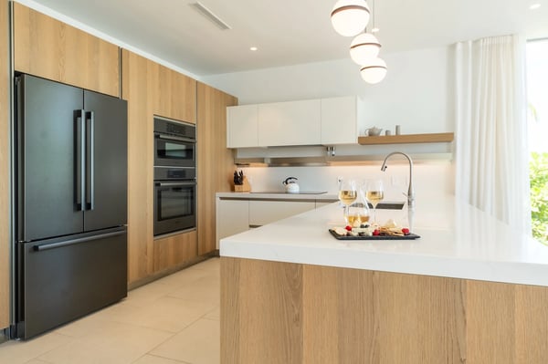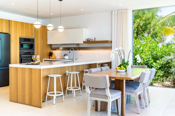 The three-bedroom Lagoon Villa spans two stories and features stunning views, a private pool, two king bedrooms, and one with two twin beds—all with private en-suites including soaking tubs and/or showers. With 3.5 bathrooms, a full kitchen, and direct access to the lagoon for non-motorized watersports.