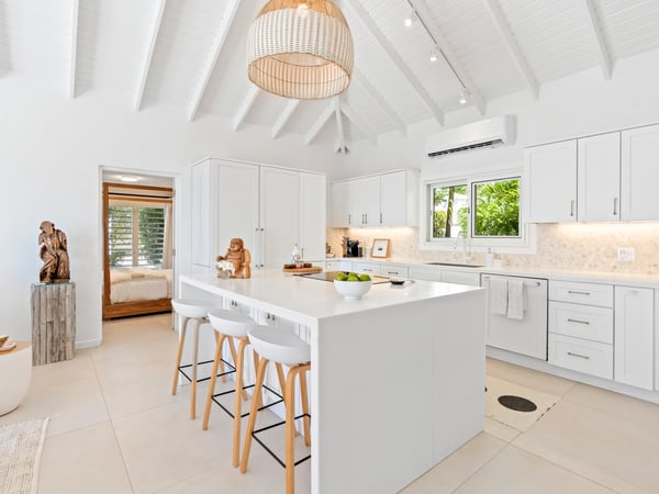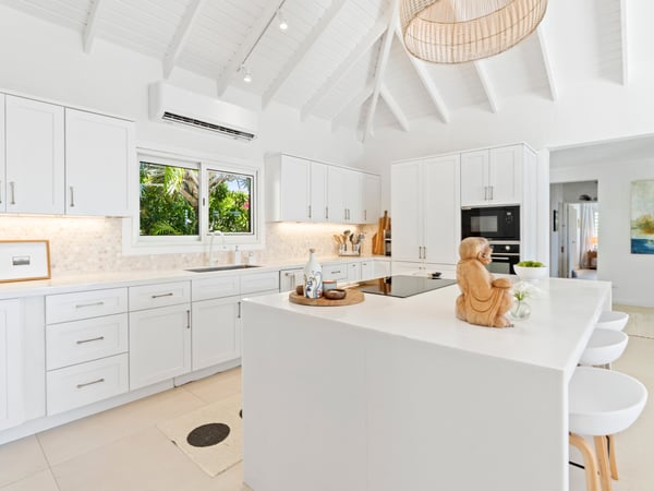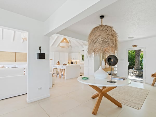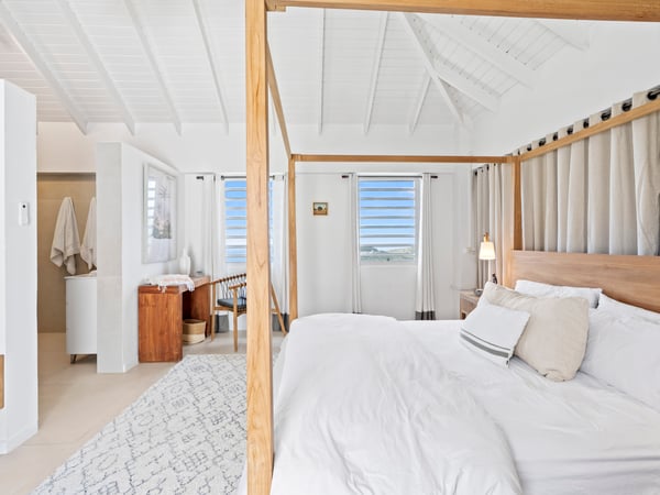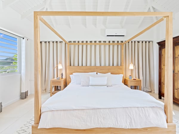 This cozy and charming villa is ideally facing the ocean and Saint-Barthélemy, and can accommodate up to six people. It has been furnished with contemporary design furniture and offers all the necessary amenities and comfort to its guests. Each bedroom is equipped with a king-size bed, air-conditioning, and a private ensuite bathroom. The spectacular views of the infinite sky, the infinite sea, the magnificent islands of Saint Kitts, Saba, and St Barts seen from the large terrace will give you the incredible and unique feeling of living on the deck of a boat. Enjoy the beautiful scenery, sunbathe on the lounge chairs, swim in the magnificent pool, dine, and revel in the unique atmosphere of the villa, and bring back with you unforgettable memories.