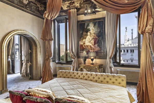 Few cities in the world can match the magnetic beauty of Rome, a place where ancient history, monumental architecture, and vibrant contemporary life coexist in perfect harmony. From imperial forums to Renaissance palaces and baroque masterpieces, the Eternal City offers a sensory journey through more than two millennia of art and culture. Its sun-washed terraces, grand piazzas, and dramatic vistas create an atmosphere that is both timeless and irresistibly alive. Among Rome’s many iconic settings, Piazza Venezia stands at the very center of the city’s historic and symbolic landscape. Overlooked by the imposing Altare della Patria—a national monument carved in white marble—this crossroads links the Roman Forum, Via del Corso, and the Capitoline Hill, placing the most storied corners of Rome just steps away. The area vibrates with energy, history, and architectural splendor, offering a front-row seat to the city’s most breathtaking panoramas. Set above this extraordinary backdrop, Eminente embodies the lavish elegance of Baroque Rome. Designed for guests who appreciate history, beauty, and absolute comfort, this penthouse blends museum-worthy character with contemporary amenities, creating a rare and exceptional retreat in the very heart of the Eternal City. CIN IT058091C2HDU8I4CI