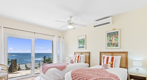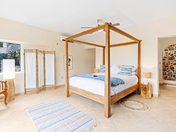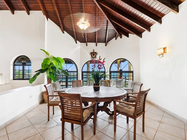 Nestled within the tropical, emerald-green hillsides of the exclusive Dawn Beach Estates gated community, Villa Baywood is a serene Balinese-style retreat where Caribbean beauty meets refined island craftsmanship. Surrounded by lush gardens, mature palms, and vibrant island flora, this redwood architectural gem offers the perfect blend of privacy, elegance, and panoramic ocean views. Designed for indoor–outdoor living, the villa features four beautifully appointed bedrooms, each offering a calming atmosphere with natural textures, high ceilings, and soothing sea breezes. Several suites boast open-air rainfall showers, bringing you even closer to the tranquil, tropical environment. The expansive living area showcases dramatic vaulted wooden ceilings, arched windows, and uninterrupted views of the sparkling Caribbean Sea. The fully equipped kitchen—rich with handcrafted wood cabinetry—flows seamlessly into spacious lounging and dining spaces, ideal for relaxed family moments or elegant entertaining. Step outside, and you’ll discover two stunning pools surrounded by lush green landscaping and plenty of sun-lounging areas, creating a peaceful sanctuary perfect for morning swims, sunset cocktails, or simply enjoying the sound of the ocean. From every angle, Villa Baywood radiates warmth, authenticity, and island charm—a true tropical hideaway designed for comfort, relaxation, and unforgettable Caribbean living. As part of the island’s unique natural environment, guests may occasionally spot iguanas or monkeys in the area. These wonderful creatures are present throughout the island, including its most exclusive neighbourhoods. Iguanas are known to frequent areas near water, including pools, and their presence may occasionally result in droppings nearby. This is a common, island-wide occurrence. While we do everything possible to minimize this, occasional visits from local wildlife are part of the natural charm of the island and may be unavoidable.