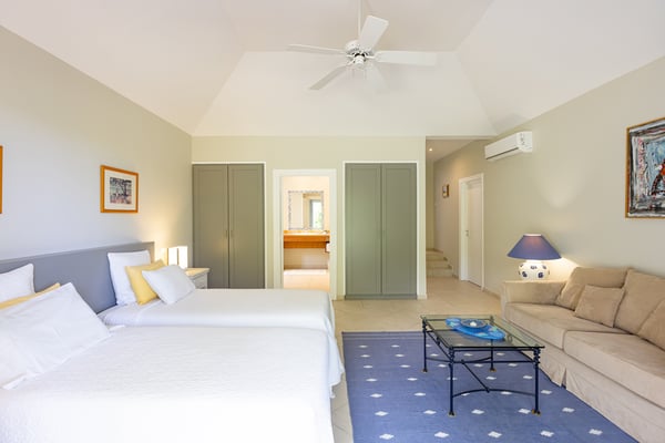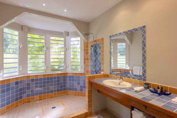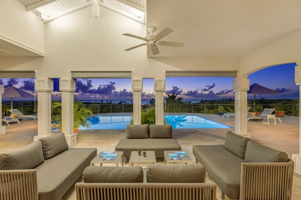 Villa Oceane welcomes you to experience the Caribbean lifestyle. The living area is spacious and features high ceilings. That should provide a comfortable and open atmosphere for guests. The sprawling terrace is a fantastic feature, with shaded seating areas for guests to relax and take in the beautiful surroundings. The swimming pool is now heated from December 15th to April 30th, outside this period the heating of the swimming pool is optional, at an additional cost of $350 per week. The property has four bedrooms, each with an ensuite bathroom. This should provide ample space and privacy for guests. Additionally, having three bedrooms with interior access is a convenient feature that allows guests to move freely around the property. Overall, it sounds like Villa Oceane has been designed with both comfort and functionality in mind. Guests should be able to enjoy the luxury and style of the property while still feeling at home and relaxed. This property is ideal for families and couples travelling together to the beautiful island of St Martin and can be rented as a two, three or a four-bedroom villa!