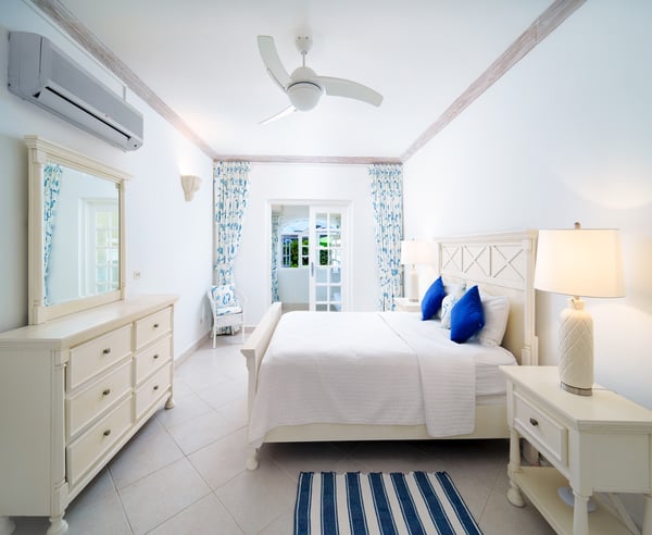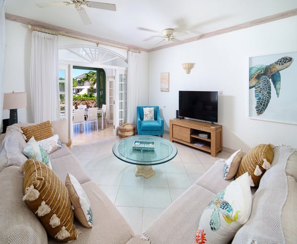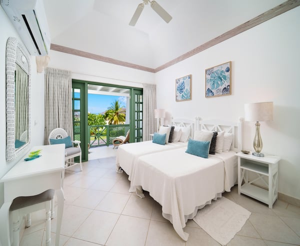 Nearby construction may result in noise disturbances. For further details on how this might affect your stay, please reach out to a villa specialist. The Fairmont Royal Pavilion is one of the most prestigious resorts in Barbados. Guests will have complimentary access to the Pavilion Beach Club and restaurants. Experience a fresh perspective at Frangipani, the recently-renovated luxury townhouse rental in Sugar Hill, Barbados. Under new ownership, this beautiful villa features a modern look with stylish new furniture, creating an inviting atmosphere perfect for relaxation and fun. As one of the premier Barbados attractions on the West Coast, Frangipani offers fine sea views and a private pool with lighting, providing an ideal setting for sun-soaked days and relaxing evenings. With three spacious bedrooms, each designed for comfort and relaxation, you'll feel right at home. The upper level offers two bedrooms, each with a private balcony, perfect for enjoying great views of the Caribbean Sea. The master bedroom features a king bed and an en-suite with both a bath and shower, while the second bedroom is equipped with twin beds and an en-suite bathroom. On the lower level, the third bedroom includes a queen bed and en-suite. As an additional option, families with young children can easily accommodate extra guests with a bunk-bed option available for a fee of $50 per night. All sleeping areas have air conditioning. The large open-plan living area is perfect for family gatherings. It features a modern and comfortable lounge and kitchen, complemented by cooling ceiling fans, high-speed Internet, and a large smart television equipped with Flow channels. The modern kitchen, equipped with a breakfast bar, hob and oven, fridge-freezer, and microwave, makes mealtimes a breeze. Step through the French doors to the outdoor terrace to enjoy family fun by the pool with seating for up to eight diners and a swing chair, or unwind on the pool-side sun deck, which has loungers and an umbrella for shade and a gas barbeque for outdoor cooking.