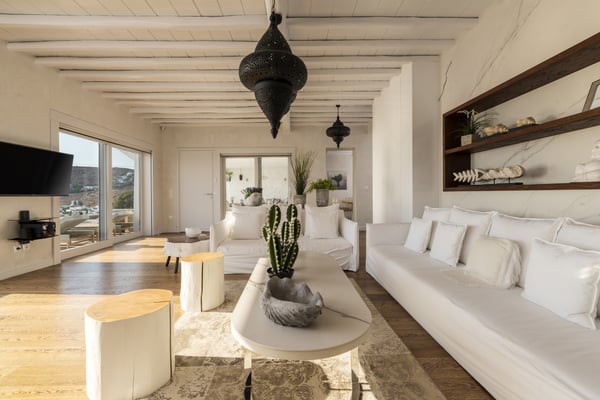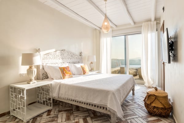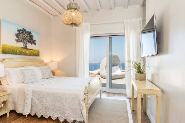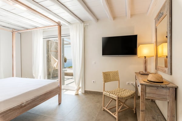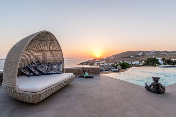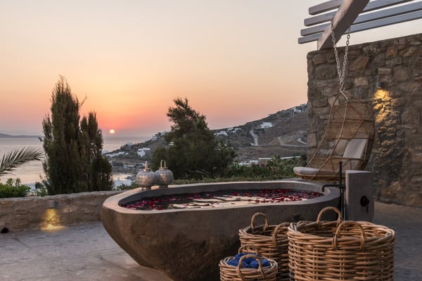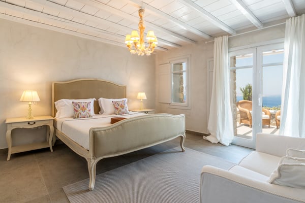 Villa Danae is perfectly located in Agios Ioannis. With 350m2 of space, this wonderfully appointed property can accommodate up to 12 guests in its six double bedrooms. There is even a private, picturesque chapel located on a small cliff at the highest level of the property, overlooking the house. Inside, the main house features a large open-plan living area with a bright lounge and dining area, as well as a fully equipped modern kitchen, all of which open directly out onto the pool terrace. The unique covered outdoor lounge area, by the pool, features a barbecue and dining area where the stunning sea views and sunsets can be enjoyed, while the poolside is well equipped with luxurious sunbeds and a stylish daybed for guests to relax the day away. Outside also features a unique granite bathtub where romantic sunsets can be enjoyed. Tourist License: 1173K91001178901
