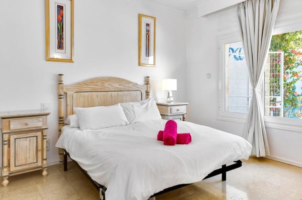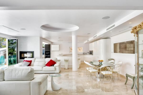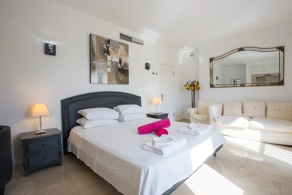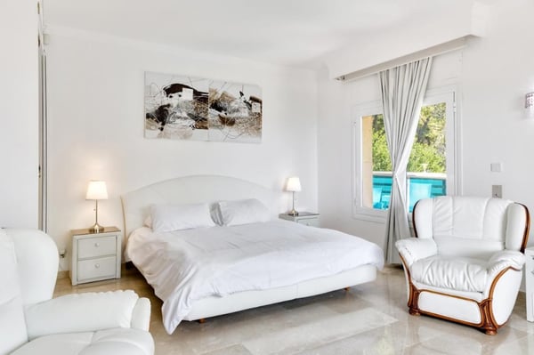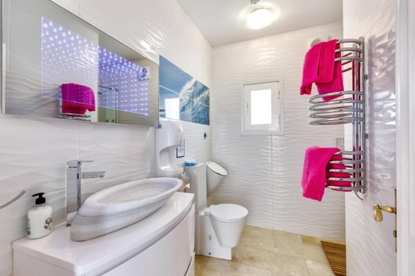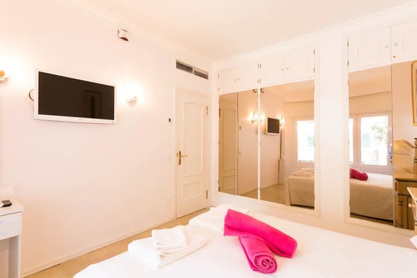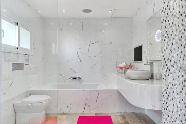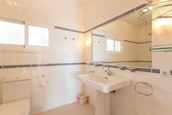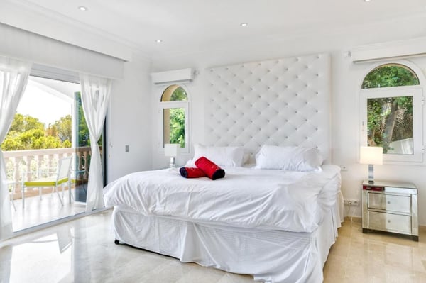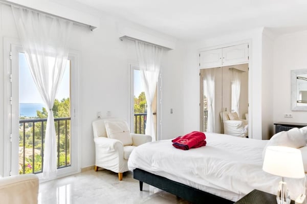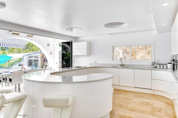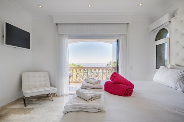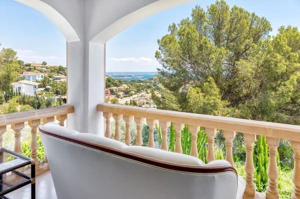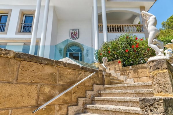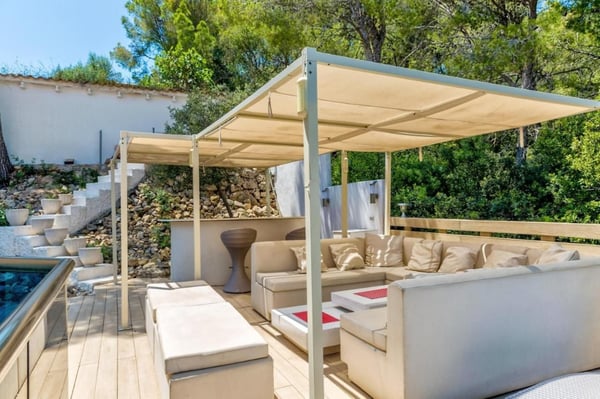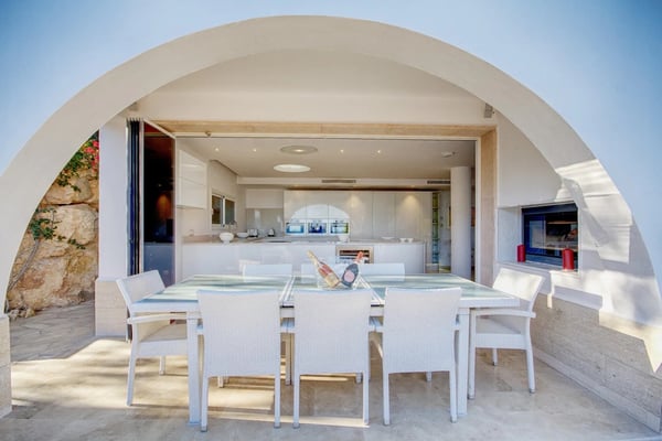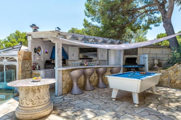Vista Blava is just a short walk to Portals Nous village where you will find fantastic bars and restaurants. After exploring the village, indulge in the spa facilities at the house, take a dip in the heated swimming pool, or take in the magical sea views over Palma Bay while in the luxury hydro hot tub. From the pool area, you can access the children's 'Pirates of the Caribbean' themed play area Inside, there is a large lounge with drop-down television and an open-plan Italian kitchen which has the latest equipment for providing great dining experiences. Full folding windows provide access to the alfresco dining area looking out to the Mediterranean. Guests have wireless internet access, SONOS, Eco Alexa, and air conditioning. The 'sports bar' is across from the outside dining area and features an American pool table, table tennis, webcast sports TV, barbecue, and fridge, enabling guests to enjoy great days and nights at the property. The spa area features a hydro eight-seater hot tub, sauna, professional gym, and kickboxing bag, as well as a Yoga deck. The upper chill-out bar area offers a 60" TV, bar, shaded seating area, and sun loungers offering amazing views over Palma Bay. License Number ETV/15348 / ESFCTU0000070210000553810000000000000000000ETV/153489