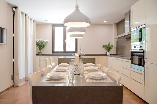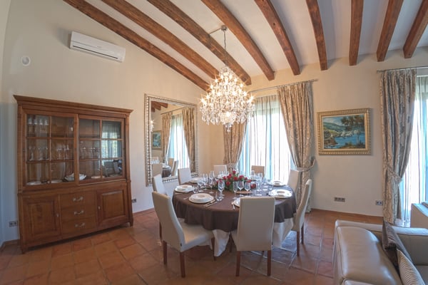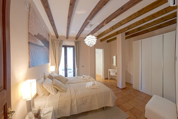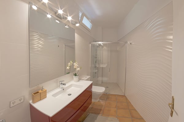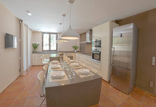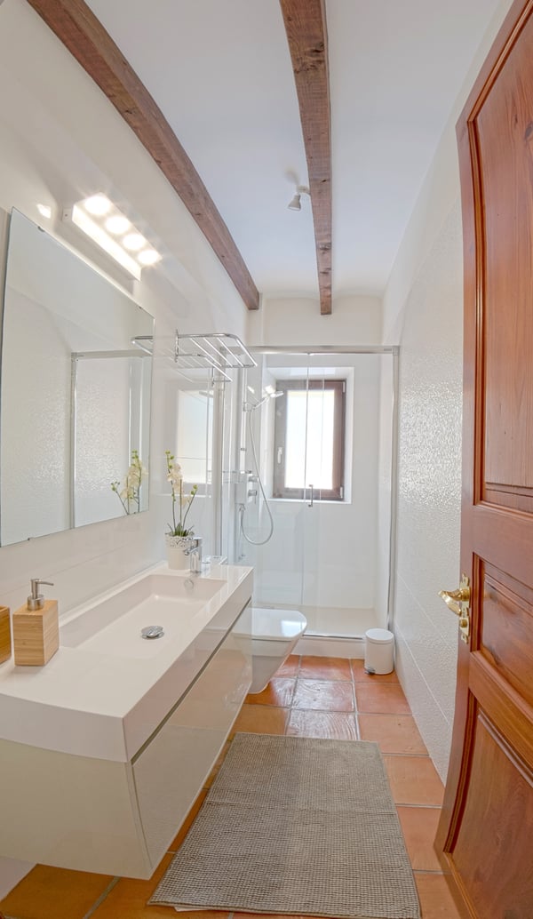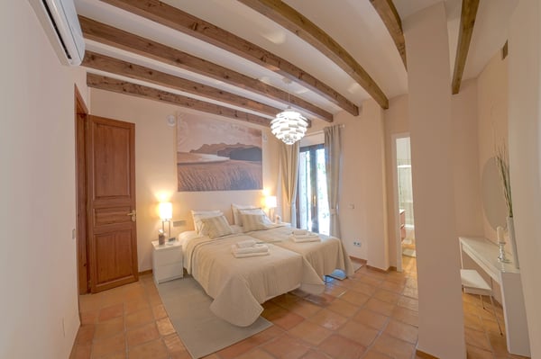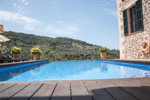 Sol de Verano is located by the Deia Church with a great size swimming pool and beautifully designed interiors. The property offers tranquility and privacy together with a convenient location within walking distance to the shops, bars, and restaurants. The highlights of Sol de Verano is the location only a couple of minutes walk to the village’s shops, bars, and restaurants, and the great size pool, as it is the largest pool allowed to be built in the centre of the village. Sol De Verano is equipped with four bedrooms, all with private bathrooms and air conditioning. Both indoor and outdoor areas are equipped with wireless internet access. On the main floor of the house, there is a modern fully equipped kitchen with breakfast seating, a living and dining room with satellite TV, a cloakroom, and a primary double bedroom with en-suite bathroom. On the lower floor, there are three double bedrooms all with en-suite bathrooms, and an office with a sofa bed. You can access the swimming pool from this floor and from one of the bedrooms. Sol de Verano is also equipped with a fantastic gym on the lower ground floor together with a utility room with a washing machine, dryer, iron and iron board, and a little kitchenette for the pool area. License Number ETV/5458