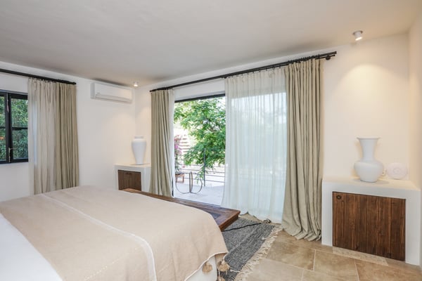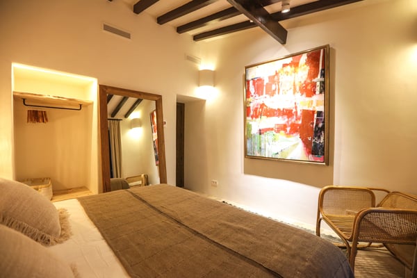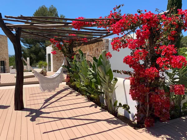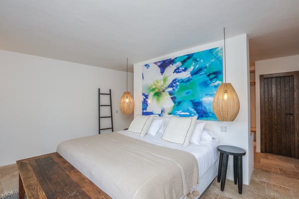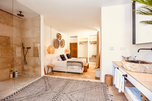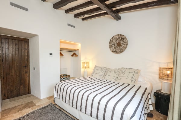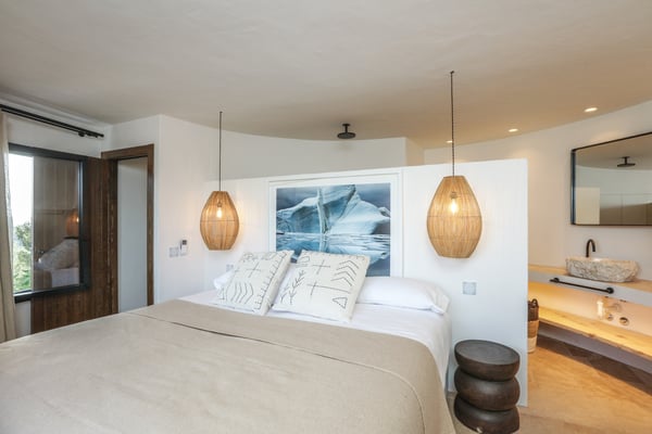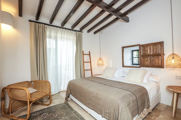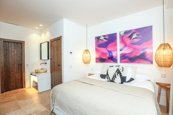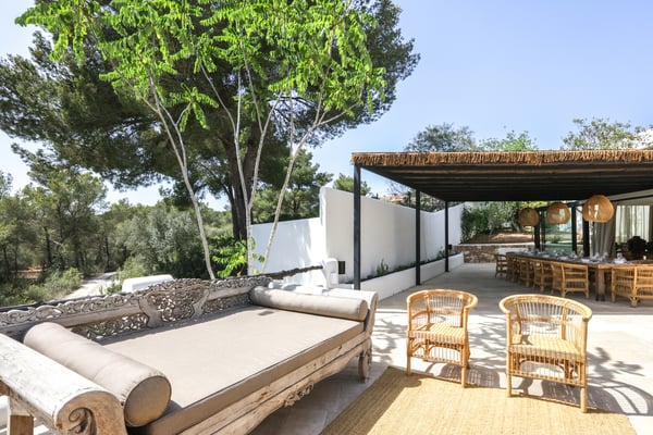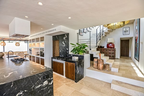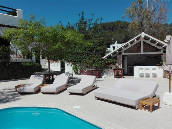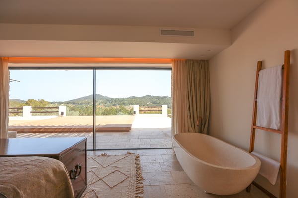 Can Gerbera is a luxurious dream residence Near Ibiza Town. Nestled just 8 to 10 minutes from the vibrant heart of Ibiza Town, Can Gerbera epitomizes luxurious living. This dream villa is a haven of elegance and sophistication, offering unparalleled amenities designed to delight and inspire. At the core of Can Gerbera lies its exquisite kitchen, a sanctuary for entertaining and accommodating large gatherings with ease. Floor-to-ceiling sliding windows open to breathtaking views of verdant farmlands on one side and seamlessly connect to the indoor and outdoor dining patios on the other. These spaces lead to a fully equipped outdoor kitchen, lushly manicured gardens, expansive lawns, a shimmering pool, a professional tennis court, and a refined pavilion. Adjoining the main kitchen is an expansive chef’s pantry, thoughtfully outfitted with a second dishwasher, an additional oven, a third sink, two refrigerators, a tall freezer, and an impressive wine fridge. It is a space meticulously designed for hosting and catering on a grand scale. From the kitchen, step into the ground floor’s architectural stone tower, where you’ll discover a striking circular home theatre and living room. This unique space, with its soaring double-height ceiling, plush furnishings, and grand fireplace, has been curated exclusively for indulgent comfort and relaxation. Centrally located within the villa is a magnificent covered summer lounge. This expansive room features a sumptuous U-shaped sofa, perfectly positioned to frame the villa’s awe-inspiring views. Adjacent to the lounge is an elegant annex building, home to a sophisticated bar and lounge area. Here, a professional-grade drinks fridge, ice maker, and sink ensure every gathering is a seamless celebration. Can Gerbera boasts a cutting-edge Loxone Domotic system, delivering effortless control of 10 audio zones, air conditioning, underfloor heating, lighting, a centralised alarm, and even front gate access—all via a convenient app or in-house iPad controls. For added luxury, every faucet and shower benefits from a de-calcification water softening system, while an advanced osmosis system guarantees pure, crystal-clear drinking water and ice. Every detail of Can Gerbera has been designed to create an exquisite blend of modern sophistication and timeless elegance, offering its residents an extraordinary lifestyle of ease and opulence. License Number: ETV-1187-E